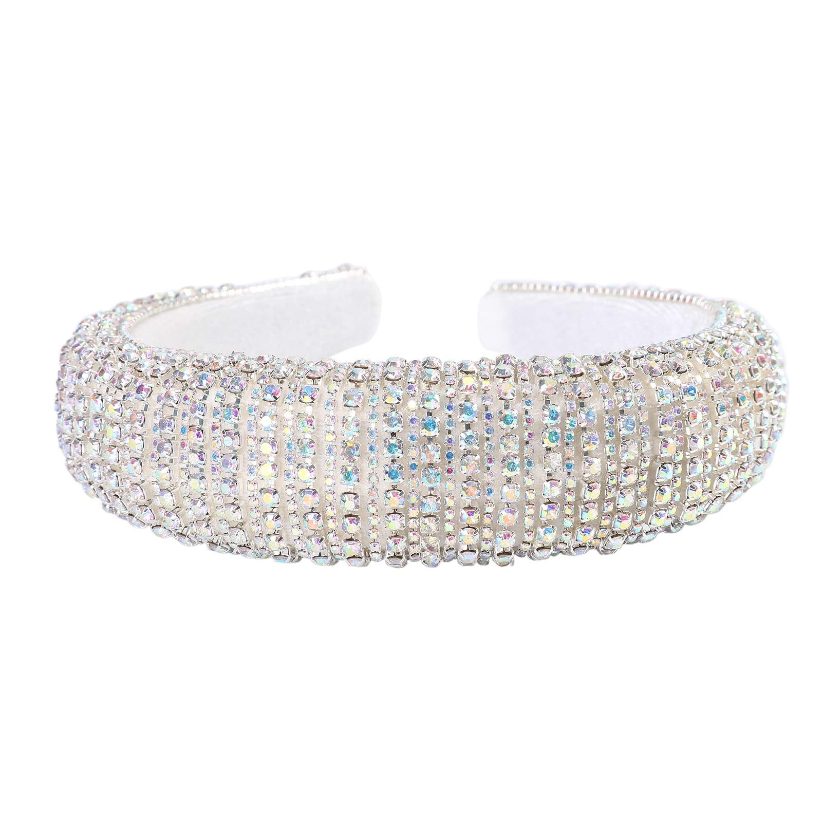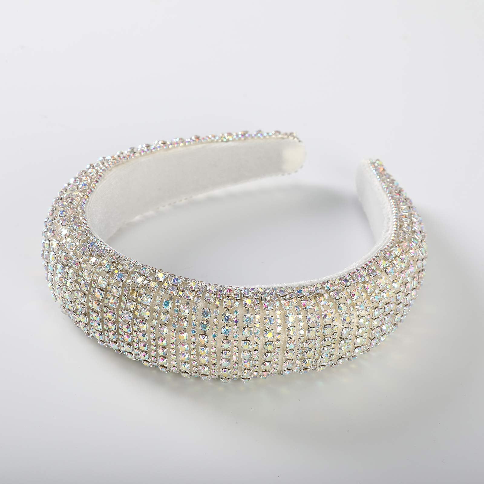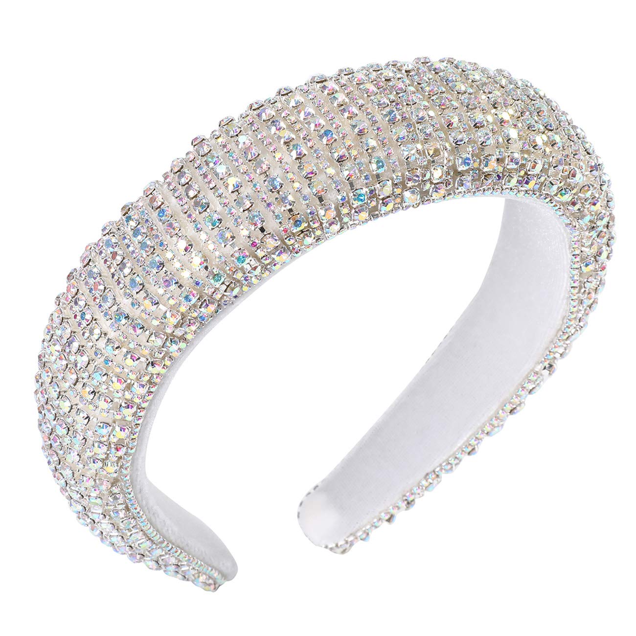 AWAYTR Velvet Padded Rhinestone Baroque Headband - Large Padded Cloth Races Goth Wedding Headpiece for Women (White - Colored Diamonds)