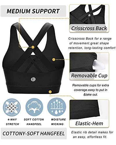 - WHY WE MADE THIS:Need a sports bra that does it all? Look no further! This sweat-wicking cross-strap bra gives you the coverage and support you need for yoga, run, and the gym—without restricting your movement or breath. fabric has added lycra that allows the bra to stretch with you and retain its shape over time. Slip in optional, removable cups for full coverage—if you want it. This bra is intended to provide medium support for great shape retention, long-lasting comfort.