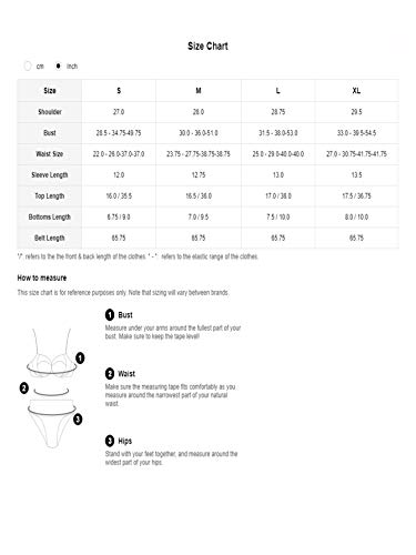 Details: Size Chart: Small: Shoulder: 14.8", Bust: 33.1", Waist Size: 25.2-39.4", Hip Size: 39", Sleeve Length: 6.9", Top Length: 12.2", Shorts Length: 7.7", Thigh: 26", Medium: Shoulder: 15.2", Bust: 34.6", Waist Size: 26.8-40.9", Hip Size: 40.6", Sleeve Length: 7.1", Top Length: 12.6", Shorts Length: 8", Thigh: 26.9", Large: Shoulder: 15.7", Bust: 37", Waist Size: 29.1-43.3", Hip Size: 42.9", Sleeve Length: 7.3", Top Length: 13.2", Shorts Length: 8.5", Thigh: 28.1", X-Large: Shoulder: 16.3", Bust: 39.4", Waist Size: 31.5-45.7", Hip Size: 45.3", Sleeve Length: 7.6", Top Length: 13.8", Shorts Length: 9", Thigh: 29.4"