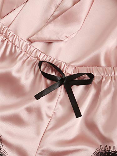 SOLY HUX Women's Sleepwear 4pcs Floral Lace Trim Satin Cami Pajama Set