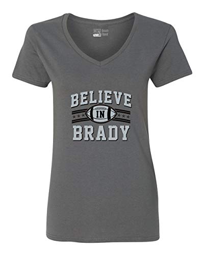 V-Neck Ladies Believe in Brady Football Sports Fan Wear DT T-Shirt Tee
