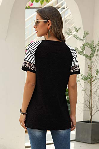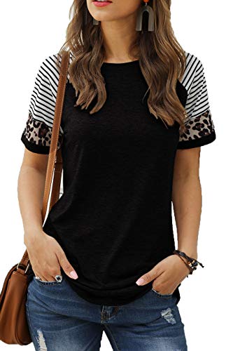 Brand: SieanearColor: 01-blackFeatures: Material:35% Rayon+ 60% Polyester+5% Spandex. Casual and comfortable wear. Features: Round neck, Short sleeve, Color Block, Leopard Print, Striped, Dry faster, Loose fit. Match: Perfect with jeans,leggings, shorts, yoga pants, casual trousers, sweater chain, scarf, necklace, boots, heels, jacket or coats and so on. Ocassion: Suit for...