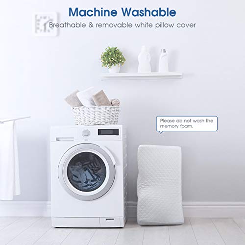- [Premium Materials]: This neck support pillow is made of premium memory foam will not lose shape over time easily, and while comfortable and soft they are also dense enough to offer unparalleled and balanced support and cushion. It is covered with an inner cover and an outer cotton-rich pillow cover. The inner cover protects the foam from getting dirt, dust, mites, and stains. Also, the breathable outer cover is with a zipper, it is easy to remove and wash.