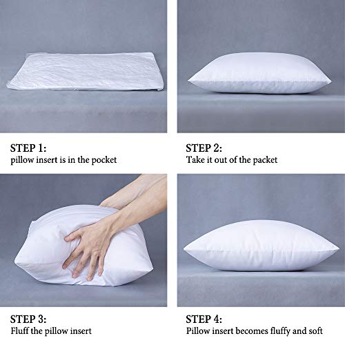 - Product Dimension: One 12x12 inch pillow insert is included. The package comes with a vacuum bag but immediately begin to fluff when you open the package. Please give it some time to expand to their proper size.
