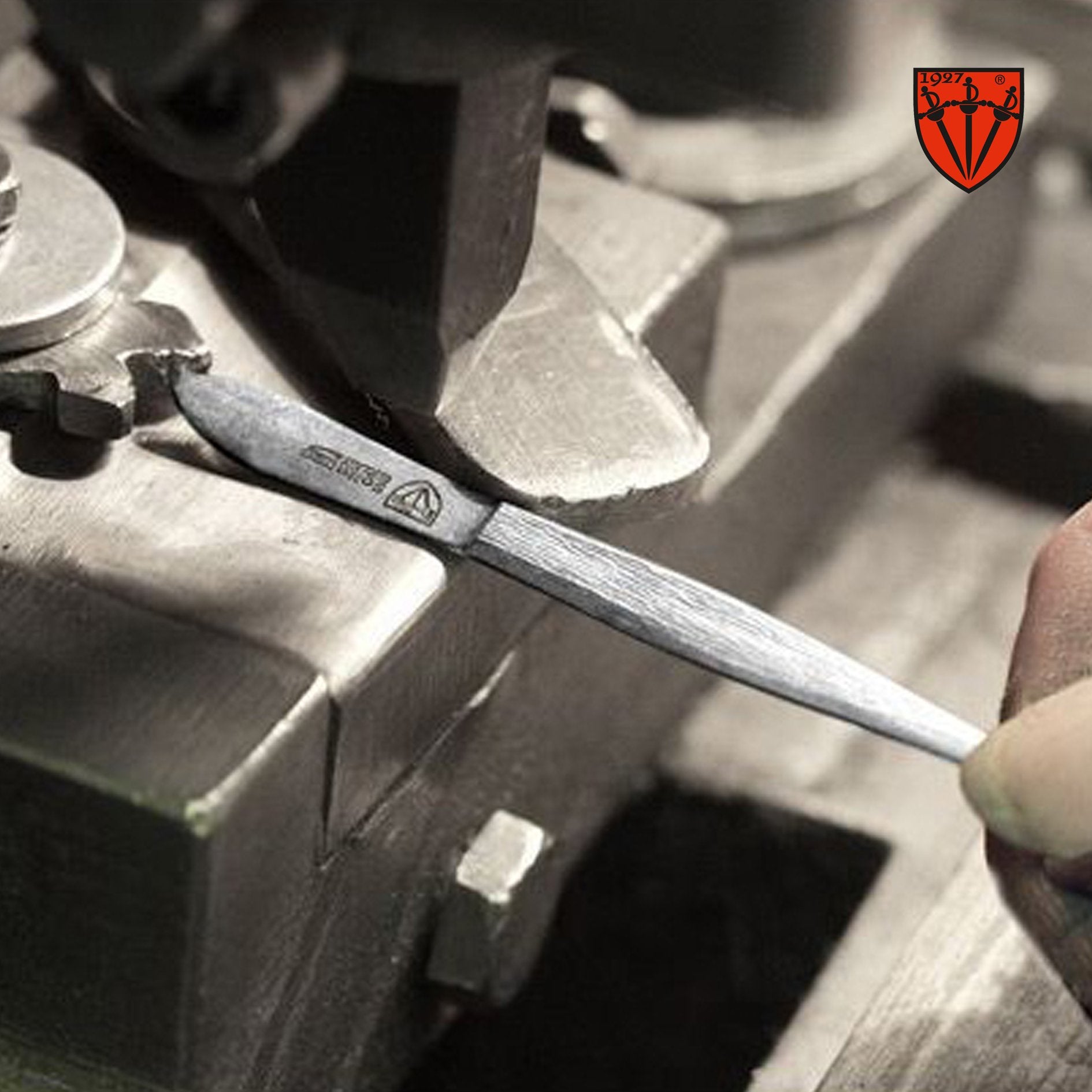 - STEEL IMPLEMENTS: Hand made, bright nickel plated (protection against corrosion), polished and hardened. All sets come in an attractive gift box. Instruments are made in Solingen / Germany.