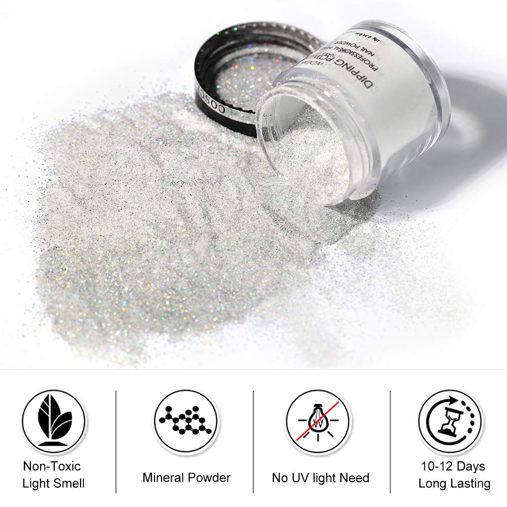 - LOVELY COLORS: Shiny glttier dipping powder which are the popular and trendy colors suitable for all seasons and daily routine life! Get creative nail art design by mixing and matching.