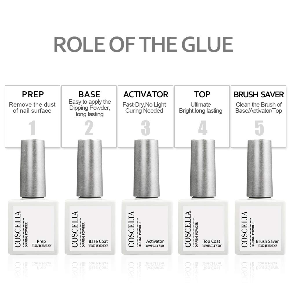 - PACKAGE CONTENT: Dipping Powder, Prep, Base Coat, Activator, Top Coat, Brush Saver, Nail Stickers and Manicure tools, dipping powder nails set contains everything you need to start using the New.