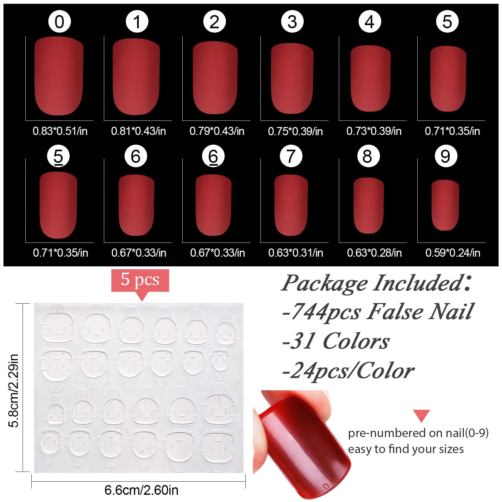 • 【Full Cover Press on Nail】If you choose TOROKOM press on nails. No matter what your nail size is, you could choose the most suitable false nail for yourself ,We have 31 colors/744pcs fake nails with 120 pcs nail adhesive tabs .sufficient in number and color for you to choose and apply.