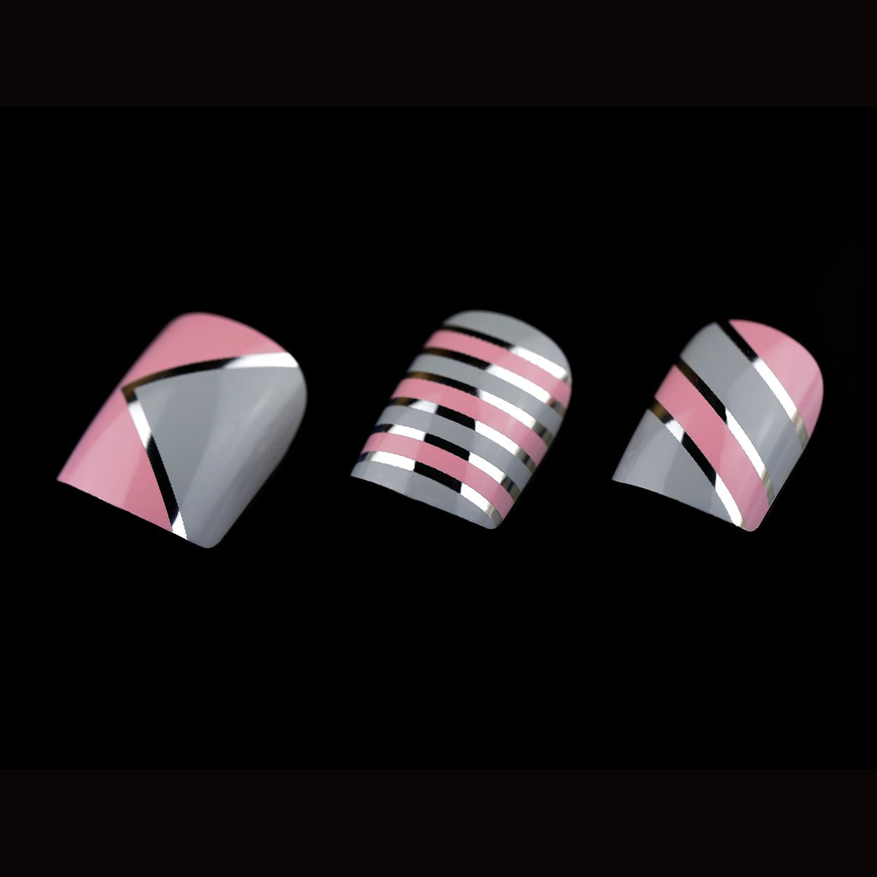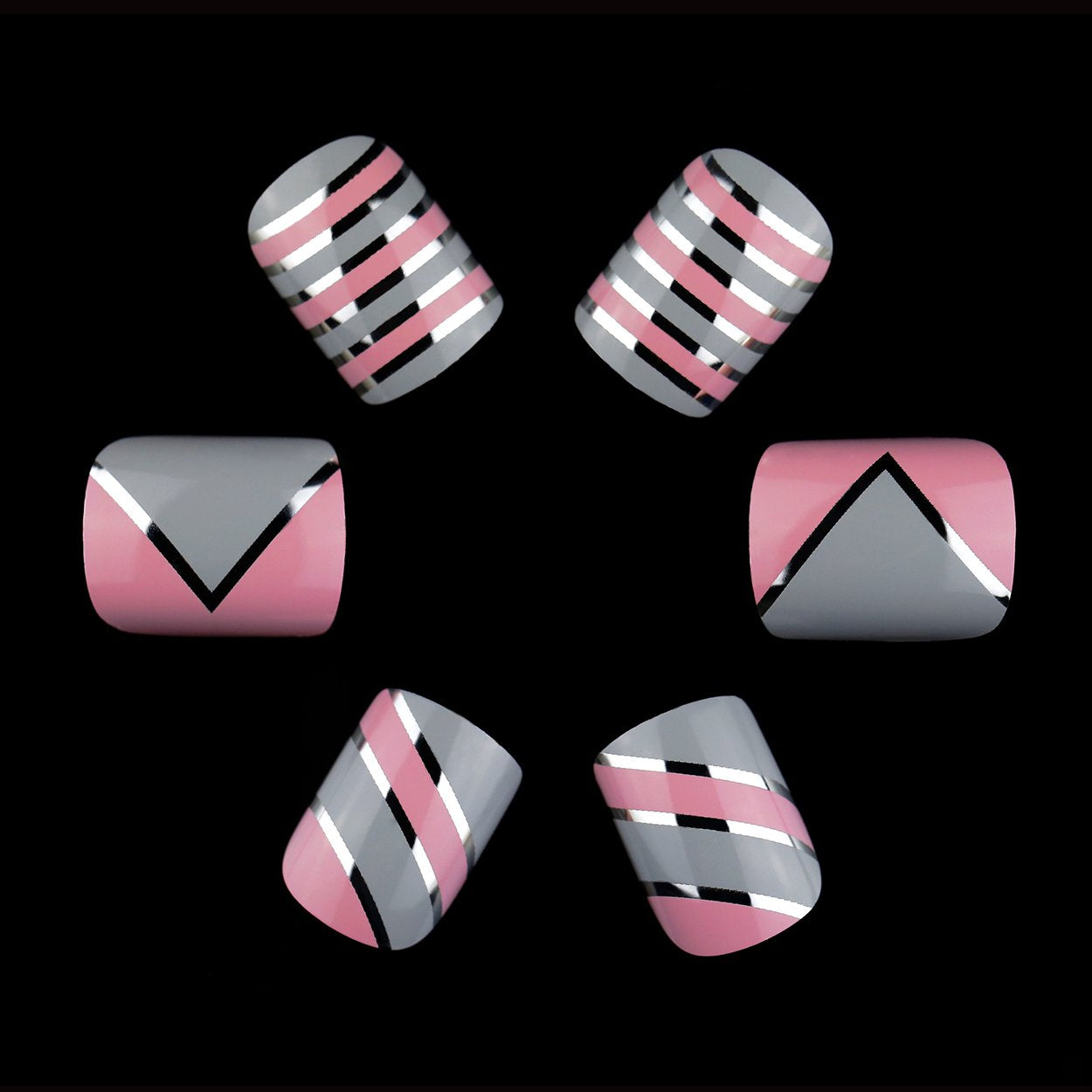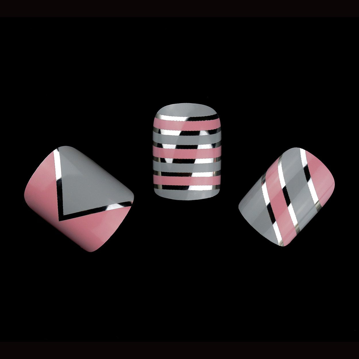 ArtPlus 24pcs x 4 (4-Pack) Pink Grey Chrome Elegant Touch False Nails Premium Pack Full Cover Medium Length with Glue Fake Nails Art 4 Boxes in 1 Premium Pack Buy 3 Get 1 Free