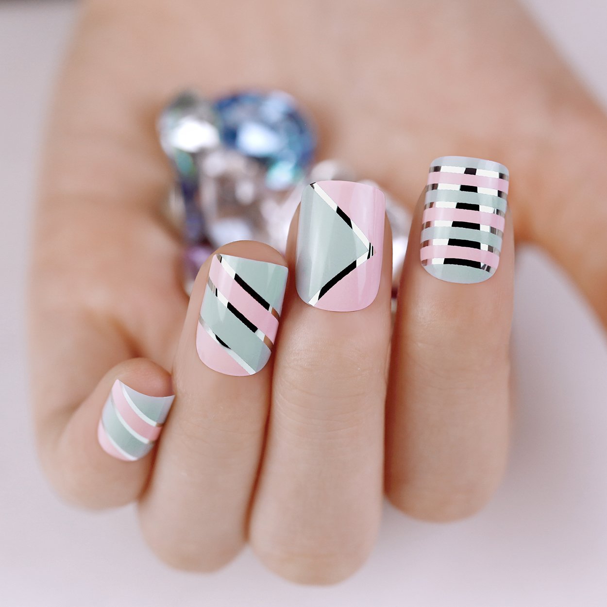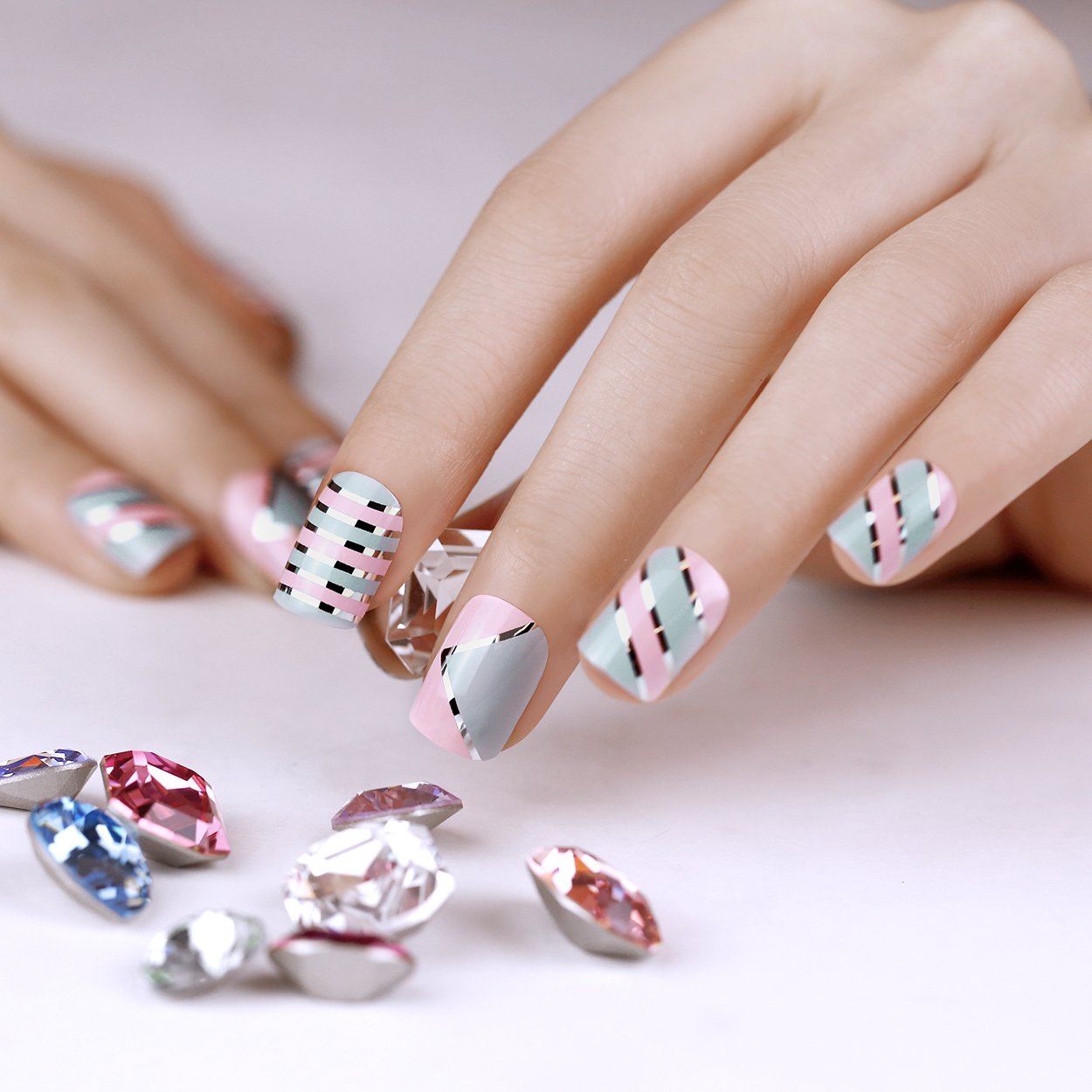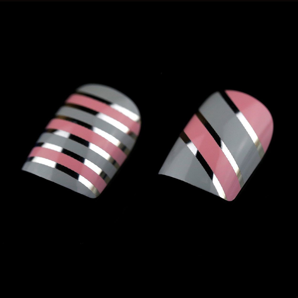 ArtPlus 24pcs x 4 (4-Pack) Pink Grey Chrome Elegant Touch False Nails Premium Pack Full Cover Medium Length with Glue Fake Nails Art 4 Boxes in 1 Premium Pack Buy 3 Get 1 Free