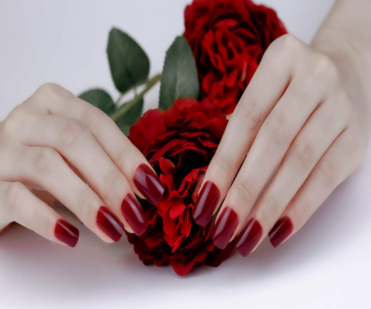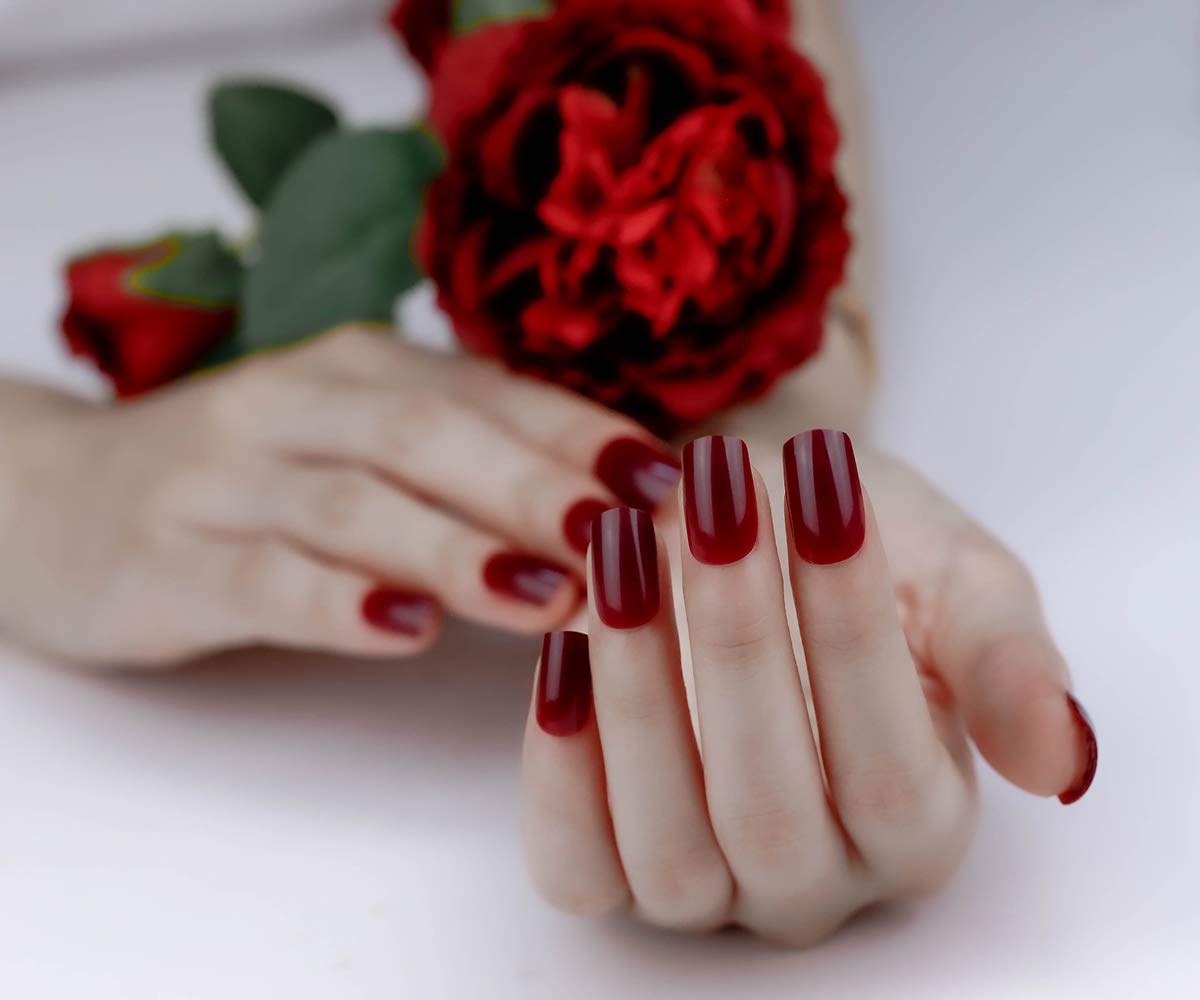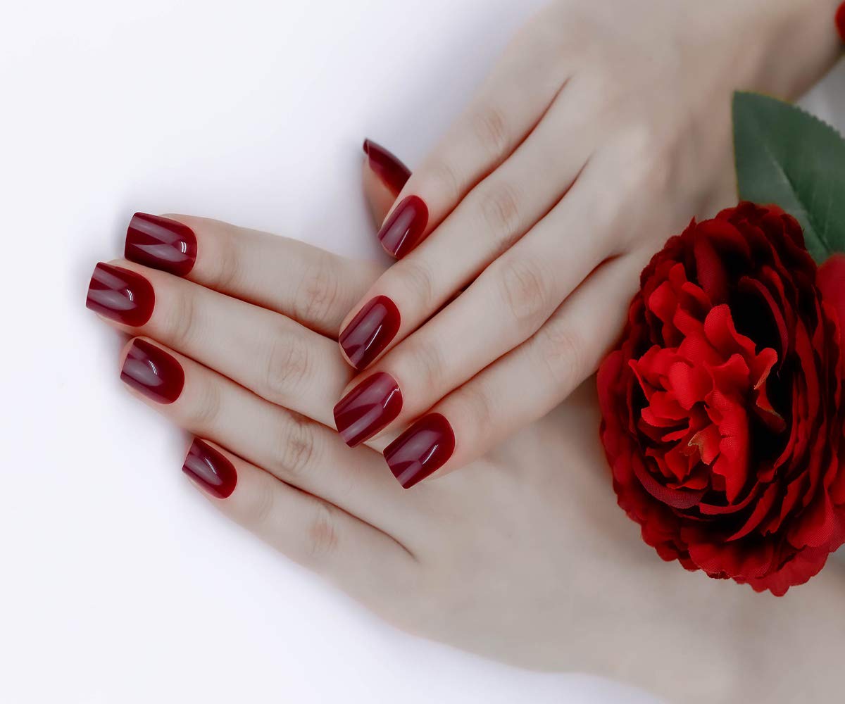 ArtPlus Preglued 24pcs x 3 (3-Pack) Dark Reddish Purple False Nails Medium Full Cover with Upgraded Adhesive Tabs Press on and 2g Glue Fake Nails Art