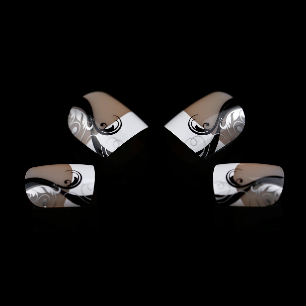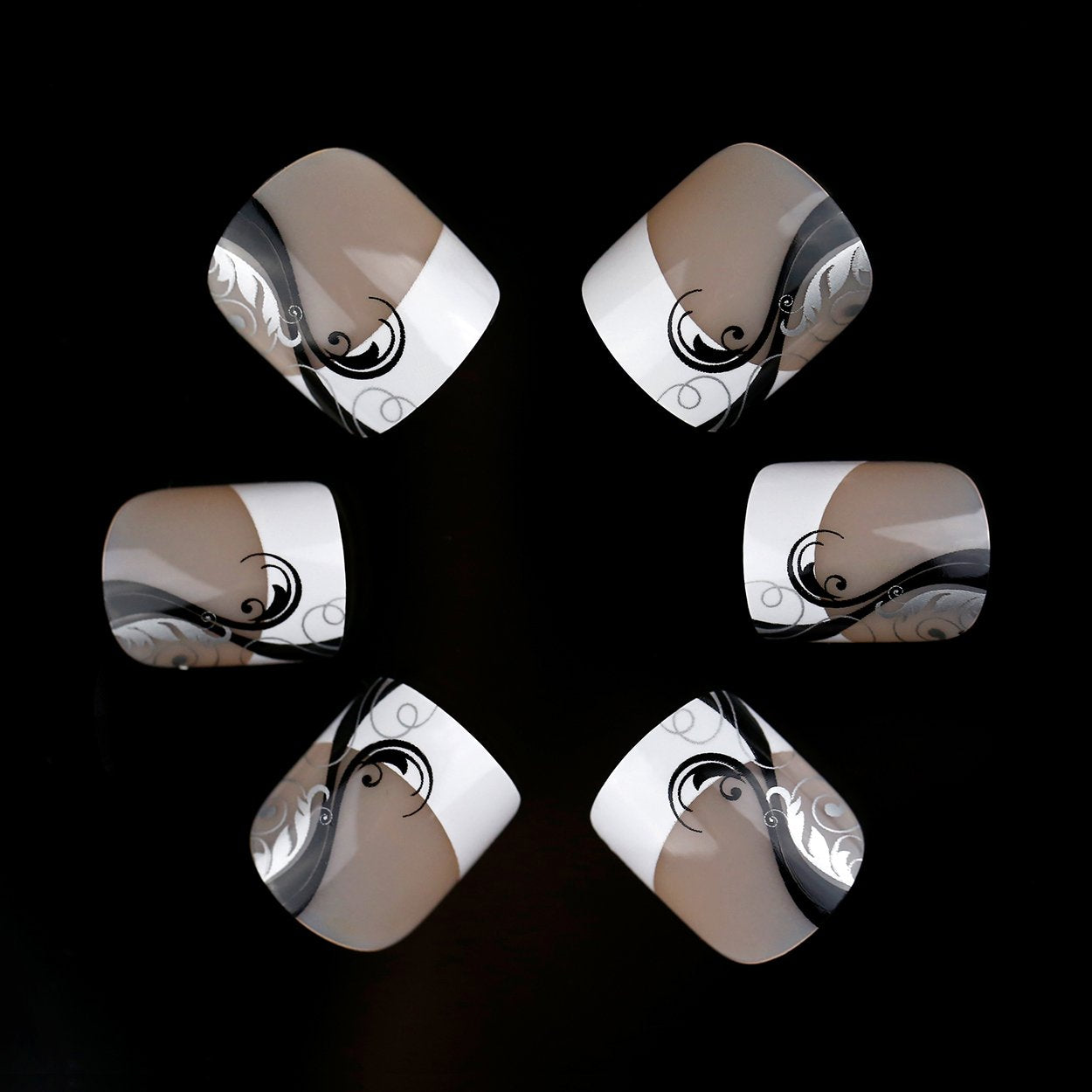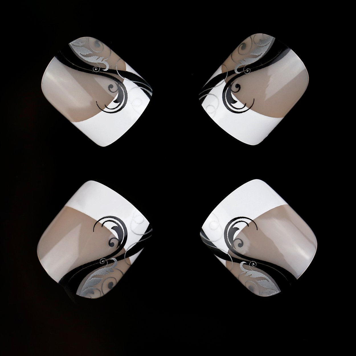 ArtPlus Preglued 24pcs x 4 (4-Pack) Symmetrical Swirling Beauty French Manicure Elegant 58089 False Nails Medium and Short with Adhesive Press on Fake Nails
