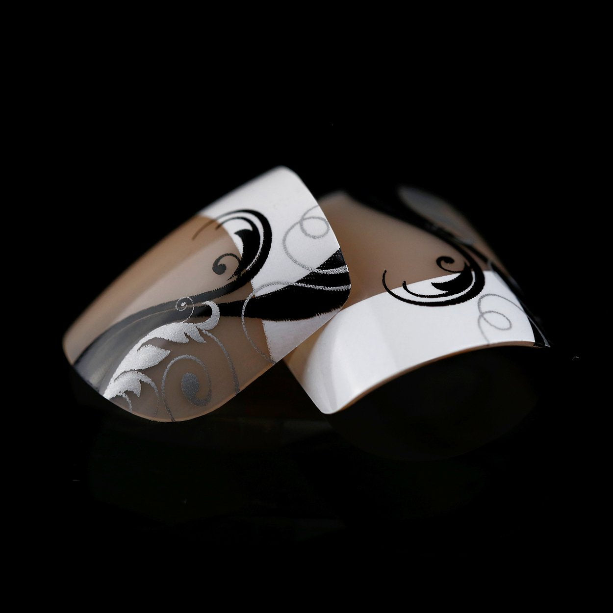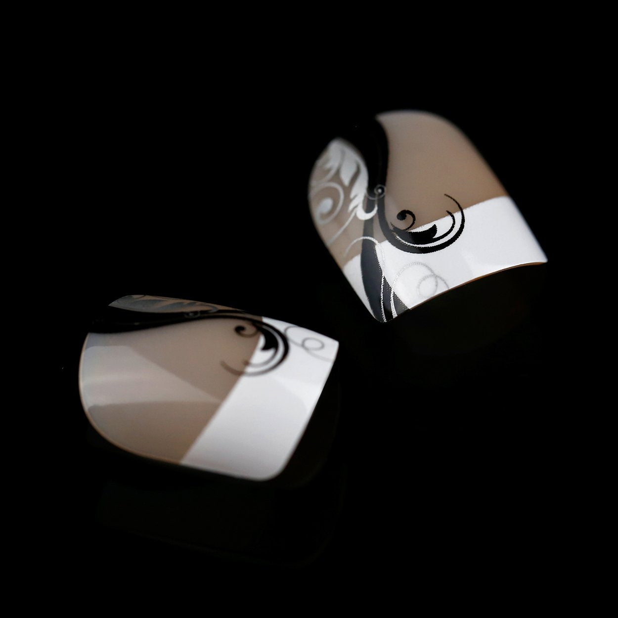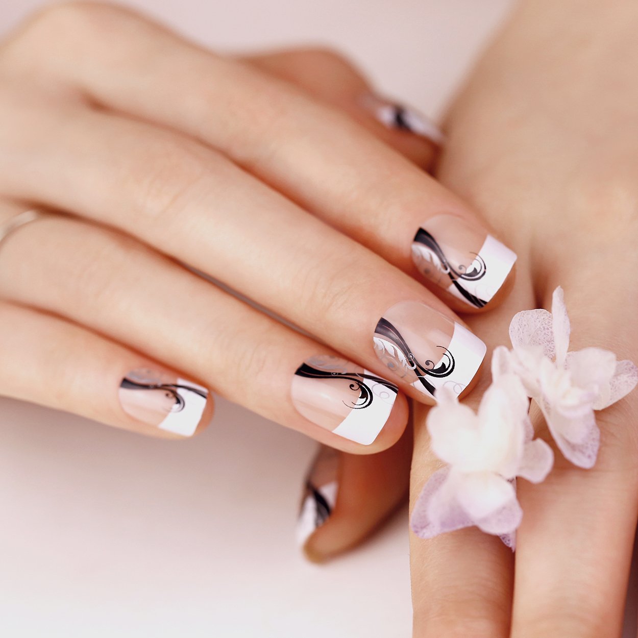 ArtPlus Preglued 24pcs x 4 (4-Pack) Symmetrical Swirling Beauty French Manicure Elegant 58089 False Nails Medium and Short with Adhesive Press on Fake Nails