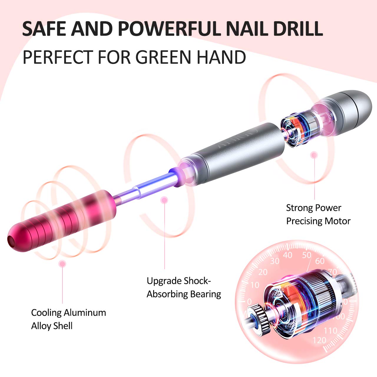 - ✅【Upgraded Product Performance】: High-quality aluminum-alloy body and smart heat dissipation can avoid overheating efficiently. Upgraded internal motor and speed bearing make ATMOKO Electric Efile Nail Drill stable quality, minimize noise and vibration, safe and easy for both home and salon use.