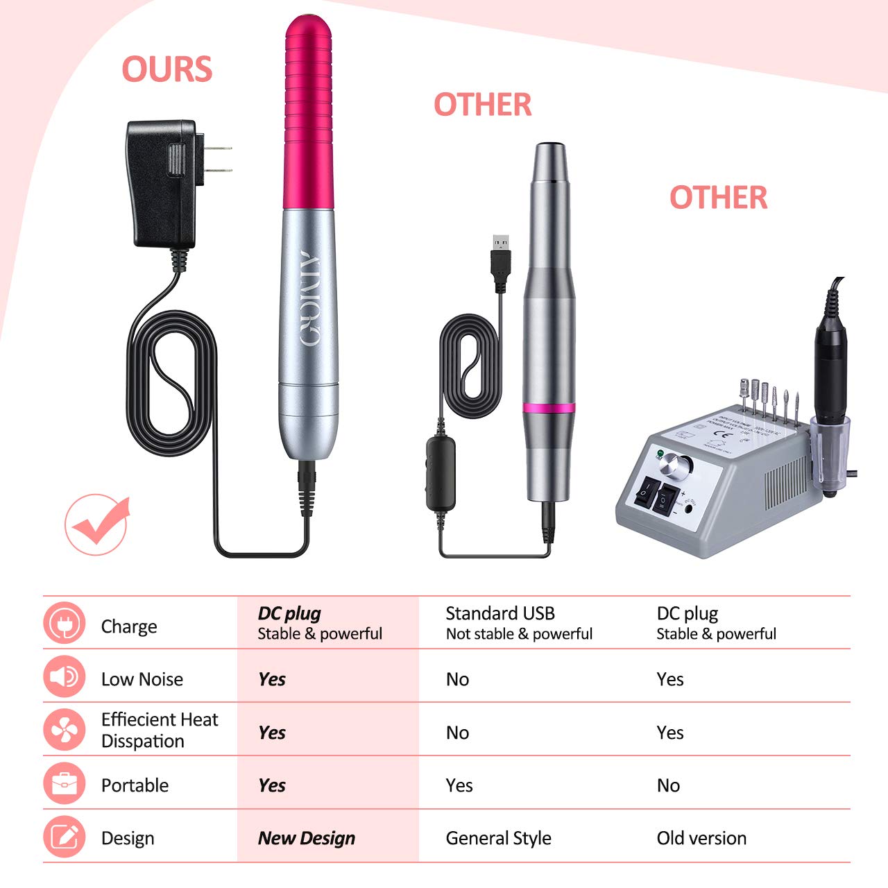 - ✅【Unique & Stylish Design】: ATMOKO Nail Drill kit for acrylic nails equipped with the latest color matching design and antislip pencil-shaped designs, which is in good griping, fitting the curvature of the human hand, enable you to hold the machine easily and comfortably. Compact and portable design, you can bring it on travel and do your nail artwork anytime anywhere.