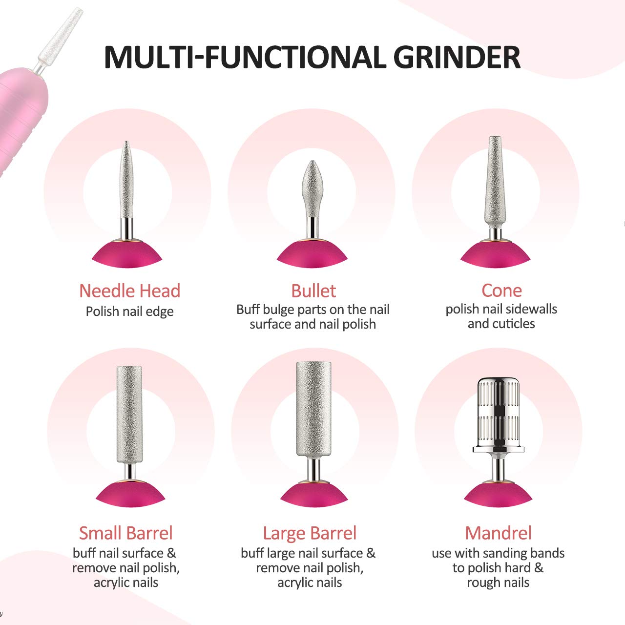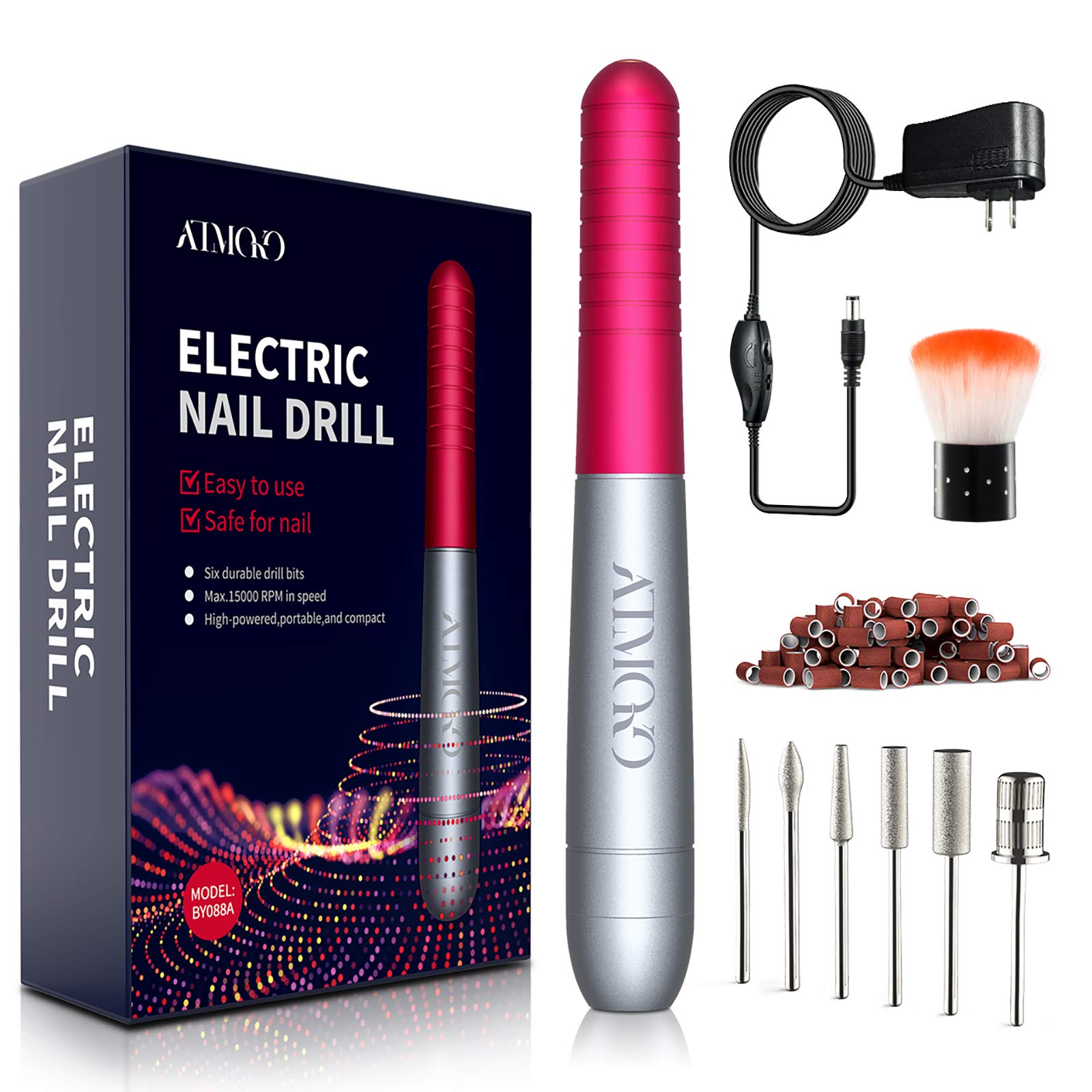 - ✅【Multi-Functional Nail Drill Kit】: ATMOKO Electric Nail File Kit comes with 6 pcs multiple nail drill bits, 55 pcs sanding bands, and 1 brush, which meets all your need of nail art. It can be used for manicure, pedicure, sharpening, sanding, polishing for acrylic and gel nails, and removing extension gels, cuticle, and dead skin.