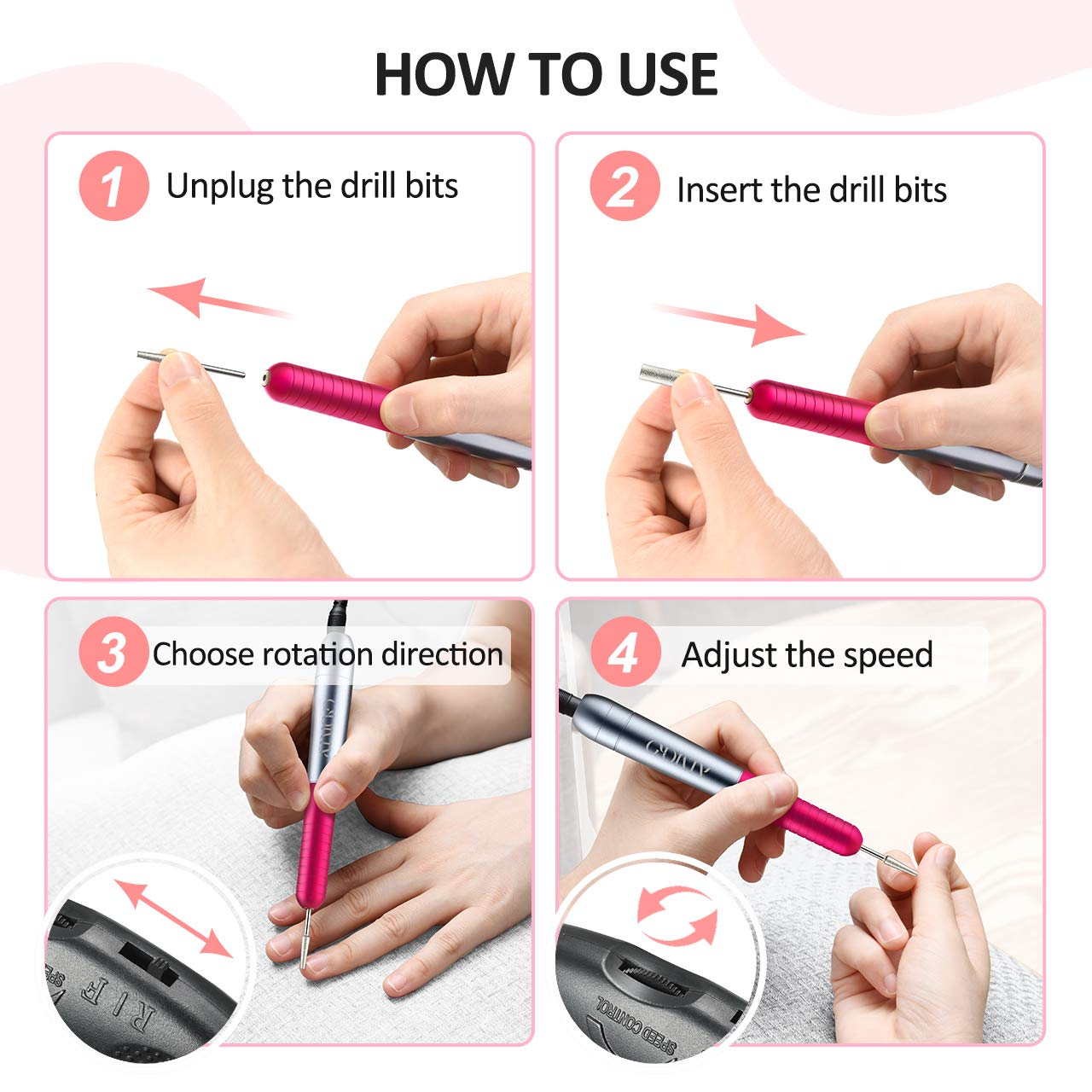- ✅【Use with Confidence】: The lightweight and ergonomically handle design, make this nail drill machine easier to handle, no matter for beginners or professionals. Safe and easy to handle, you can easily replace the drill bit without tools, just pull it out and insert it. If you have any questions, please contact customer service, we will provide you with the best services.