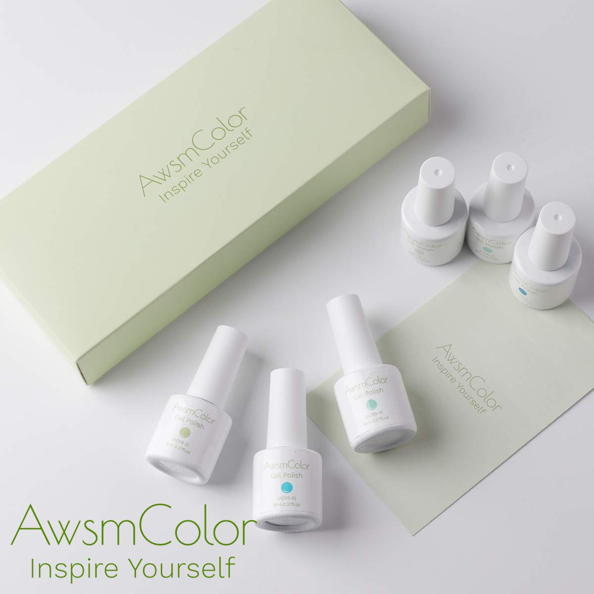 • MEET YOUR DIVERSE NEED: Inspiration from ice and snow. These light blue-green series sets gels, suitable for winter and summer. AwsmColor nail polish will make you feel happy and charming. AwsmColor tenet is: flaunt your colors. Awsmcolor can radiate your unique charm, let you shine in your life, work or dates, parties, or ceremonies.
