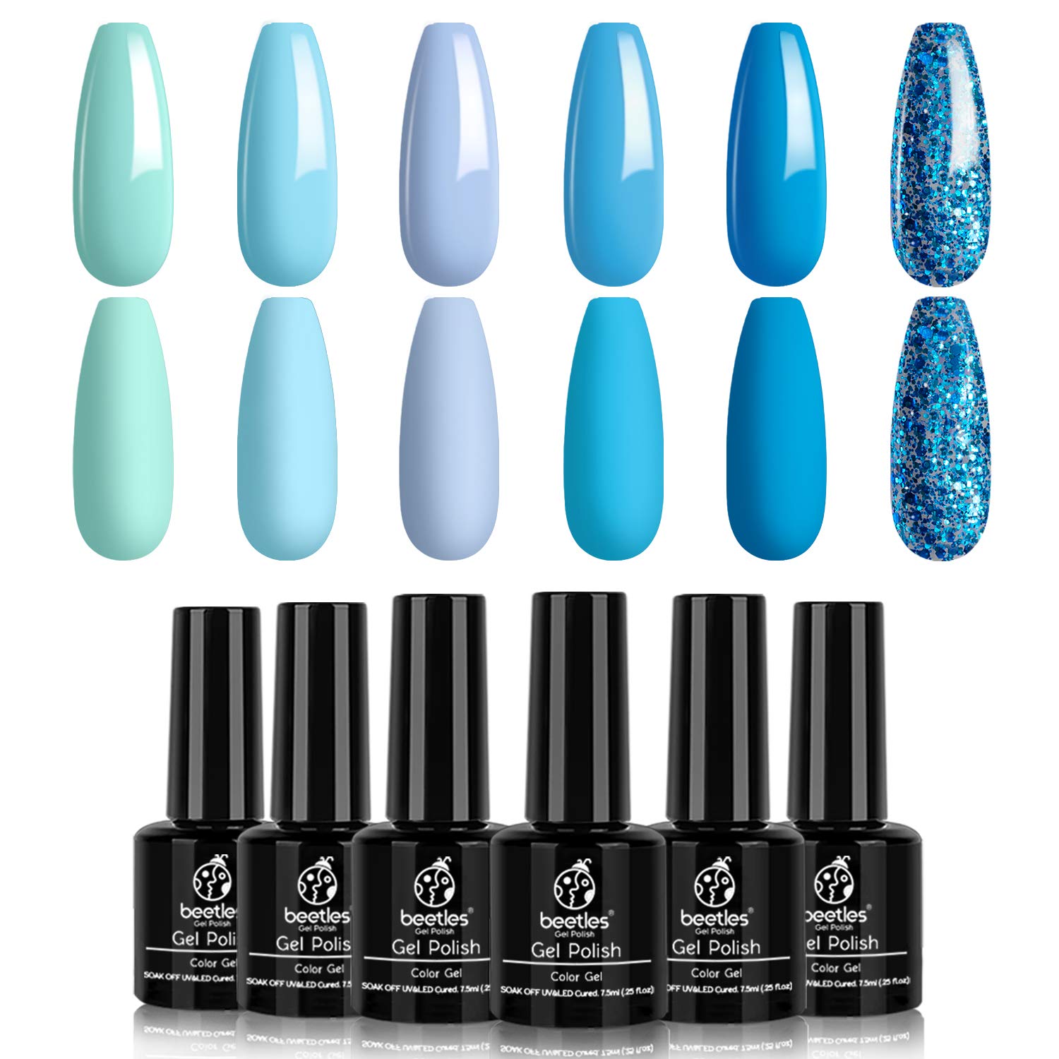 Beetles Gel Nail Polish Set- Summer Splish Splash Collection 6 Colors Bule Nail Gel Polish Kit Soak Off LED Lamp Gel Nail Kit Nail Art Manicure Salon DIY at Home