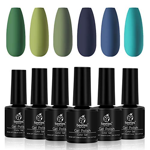 Beetles Winter Green Gel Nail Polish Kit - Olive Green Avocado Gel Polish Set Navy Blue Dark Blue Turquoise Soak Off Nail Lamp Nail Gel Kit, 7.3 ml Each Bottle Gifts Box