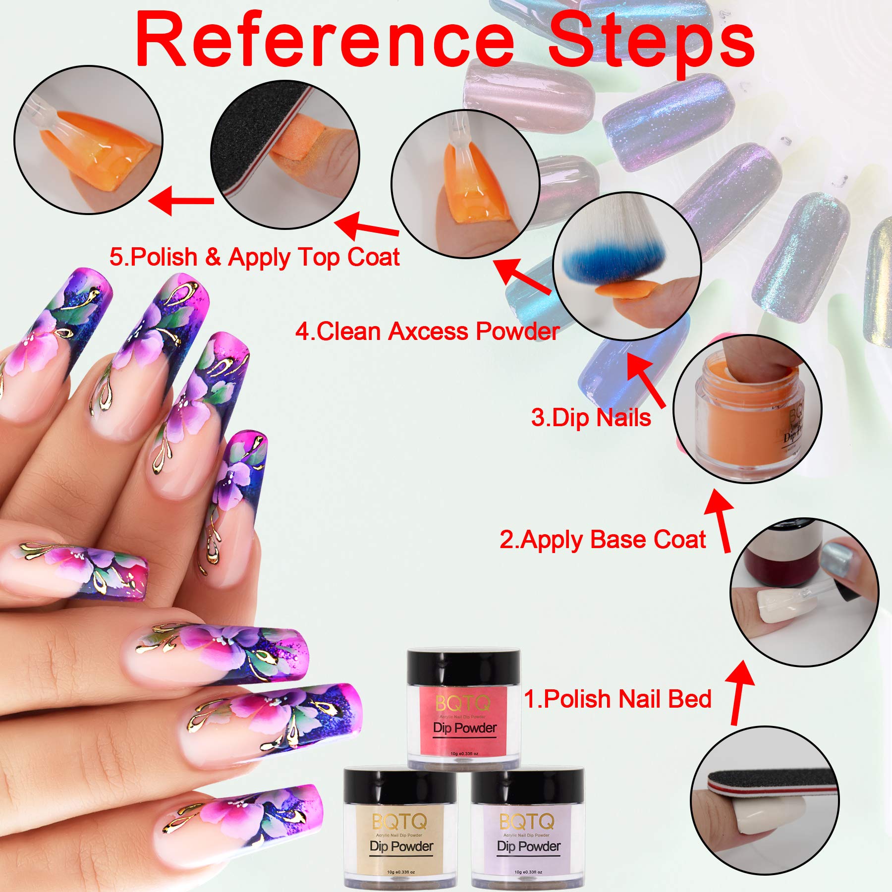 - Safe material: BQTQ dipping nail powder made of natural formula, low odor, non-toxic, breathable, water proof and won't harm your nail bed, great choice for french nail manicure nail art