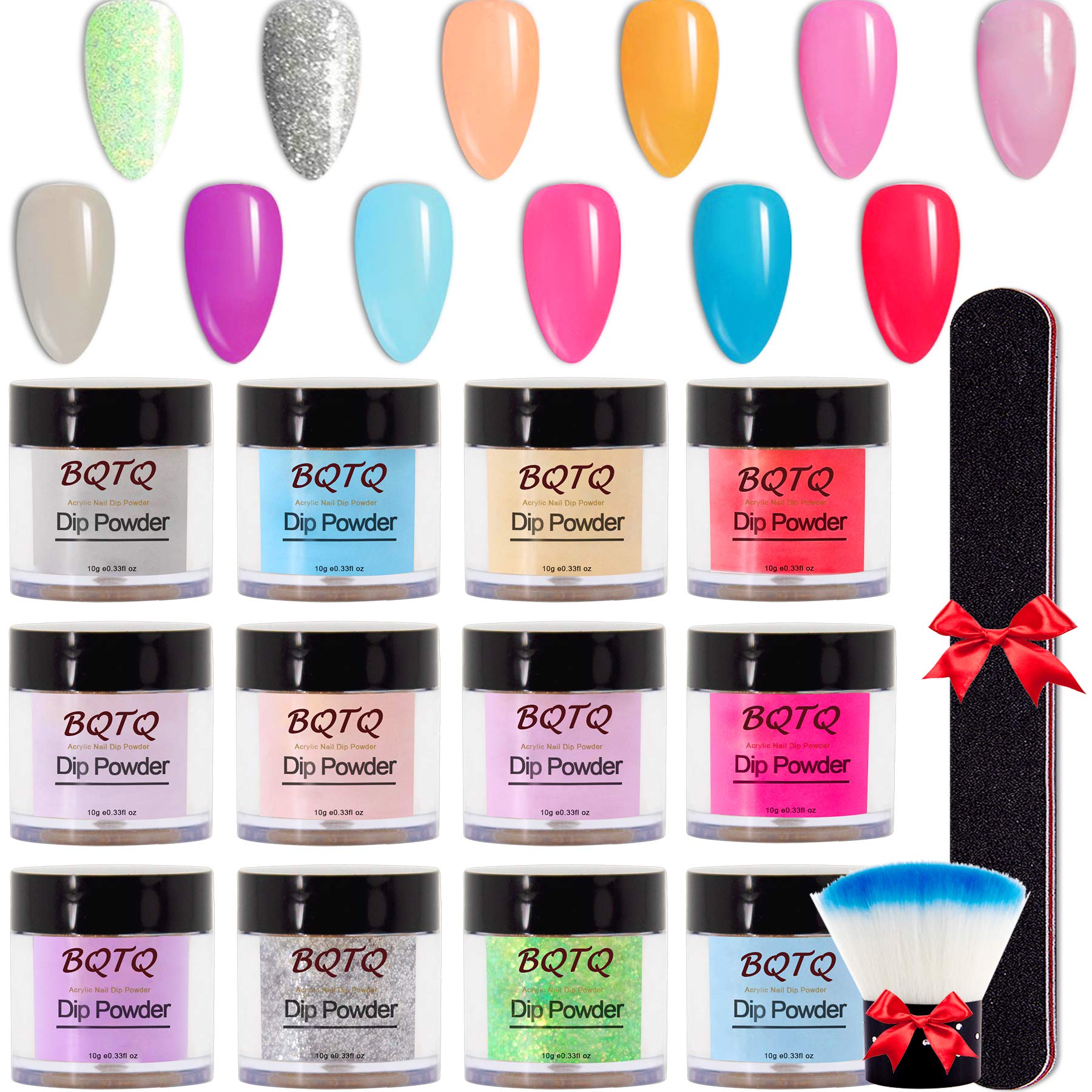 BQTQ 12 Colors Nail Dip Powder Dipping Powder Acrylic Nail Powders with a Soft Nail Brush and a Nail File for French Nail Manicure Nail Art, No UV/LED Lamp Needed by BQTQ Store