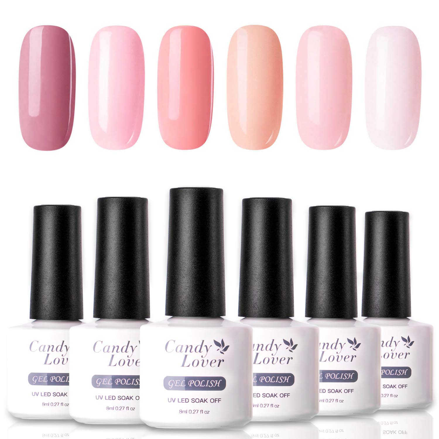 Candy Lover Gel Nail Polish Set - Pink Peach White 6 Pastel Popular Colors Summer Fall Collection, UV LED Home Manicure Nail Art Gift Kit