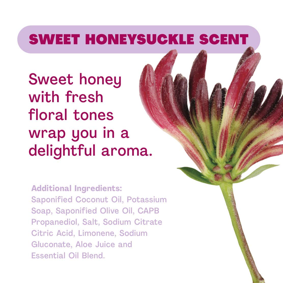 - Sweet Honeysuckle Moisturizing Soap: Coconut oil, olive oil, vitamin E, and a specialized blend of essential oils create natural foaming without stripping natural oils.