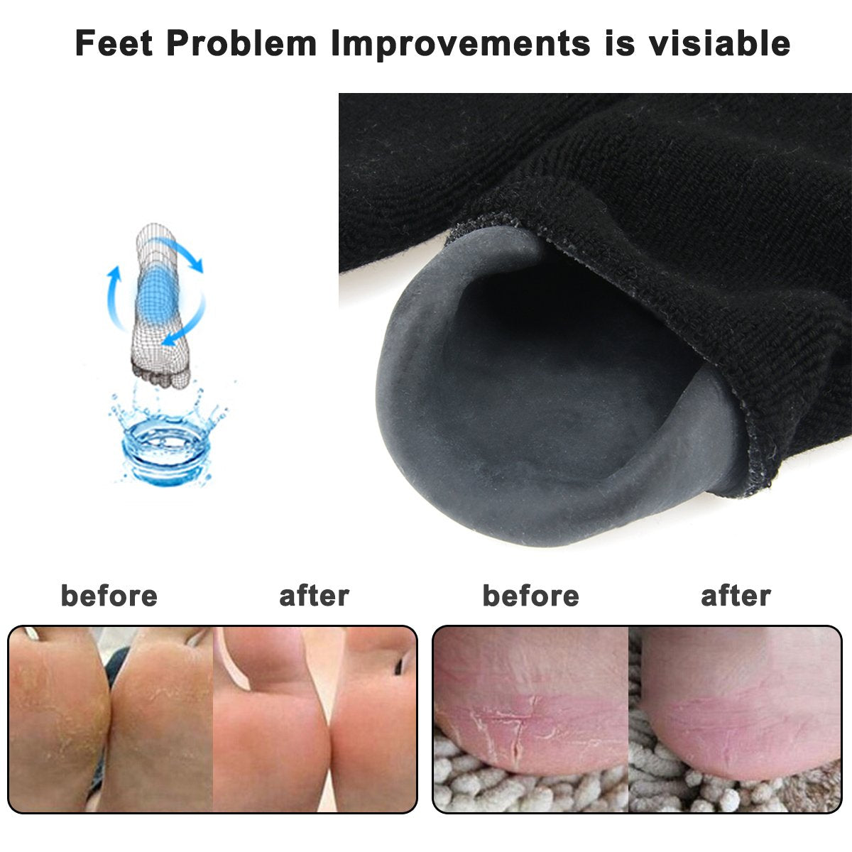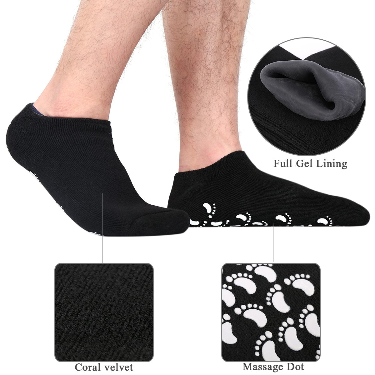 • ♥ REPAIR YOUR DRY FEET: Built-in moisturizing hypo-allergenic full gel lining can provide an intensive hydration treatment to soften your dry, hard, cracked, and rough skin on your feet. Also provide an improvement of the appearance by helping reduce fine lines of aging