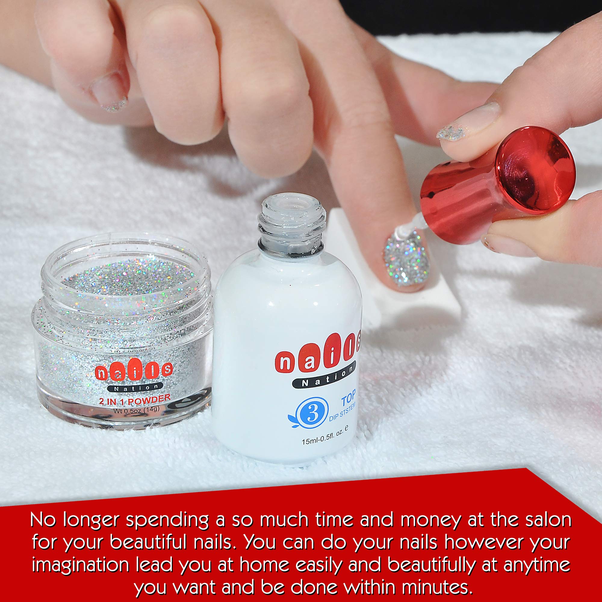 Why Choose NAIL NATION Dipping Powder System Starter Kit? 1\. Healthier:NAIL NATION dipping powder is formulated with a natural formula, containing Vitamin E and Calcium to help nails grow stronger and healthier.Non-toxic,Low odor.