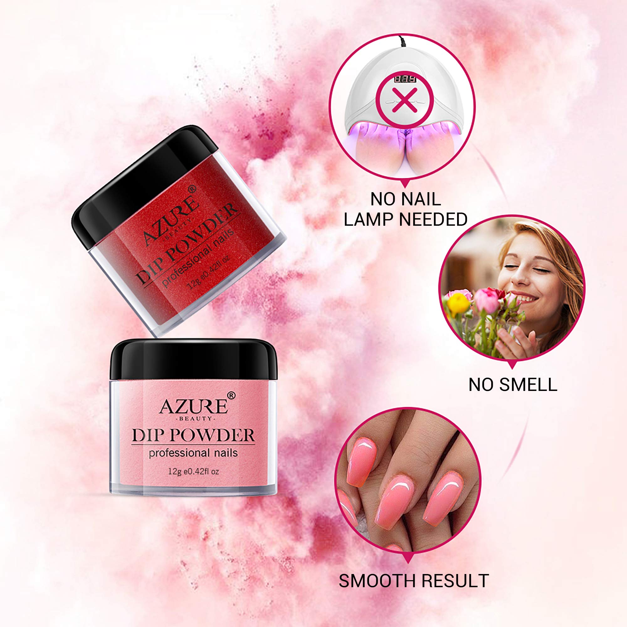 - ღEASY TO APPLY & NO NEED CURING: AZUREBEAUTY dip powder is easy enough for a starter to apply. It just needs a 3-step dipping liquid to apply. At the same time, you can mix the different powder as you like freely. AZUREBEAUTY Dip Powder System doesn’t need a nail lamp to cure, so that can avoid turning skin black. It's a faster way to paint your nail.