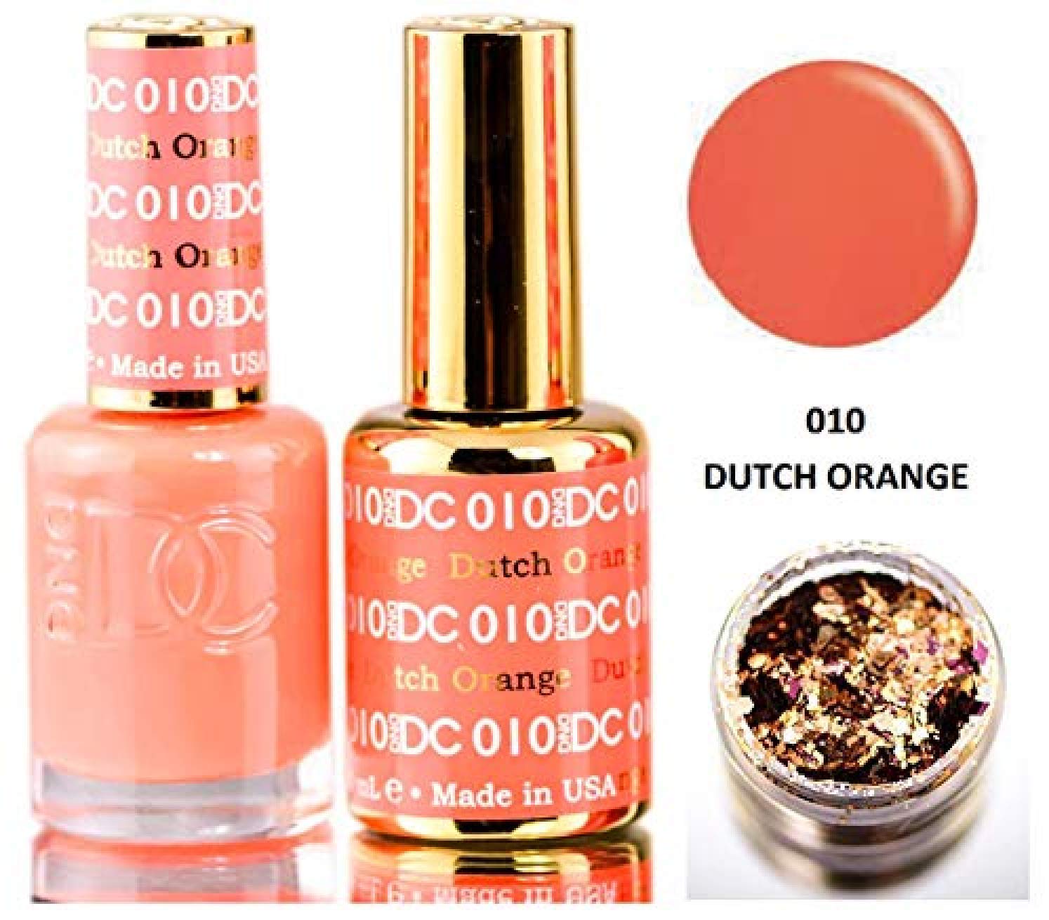 DND DC Oranges GEL POLISH DUO, Gel Lacquer 0.5 oz + Matching Nail Polish Color 0.5 oz, Daisy Nails (with Glitter) Made in USA (Dutch Orange (010))