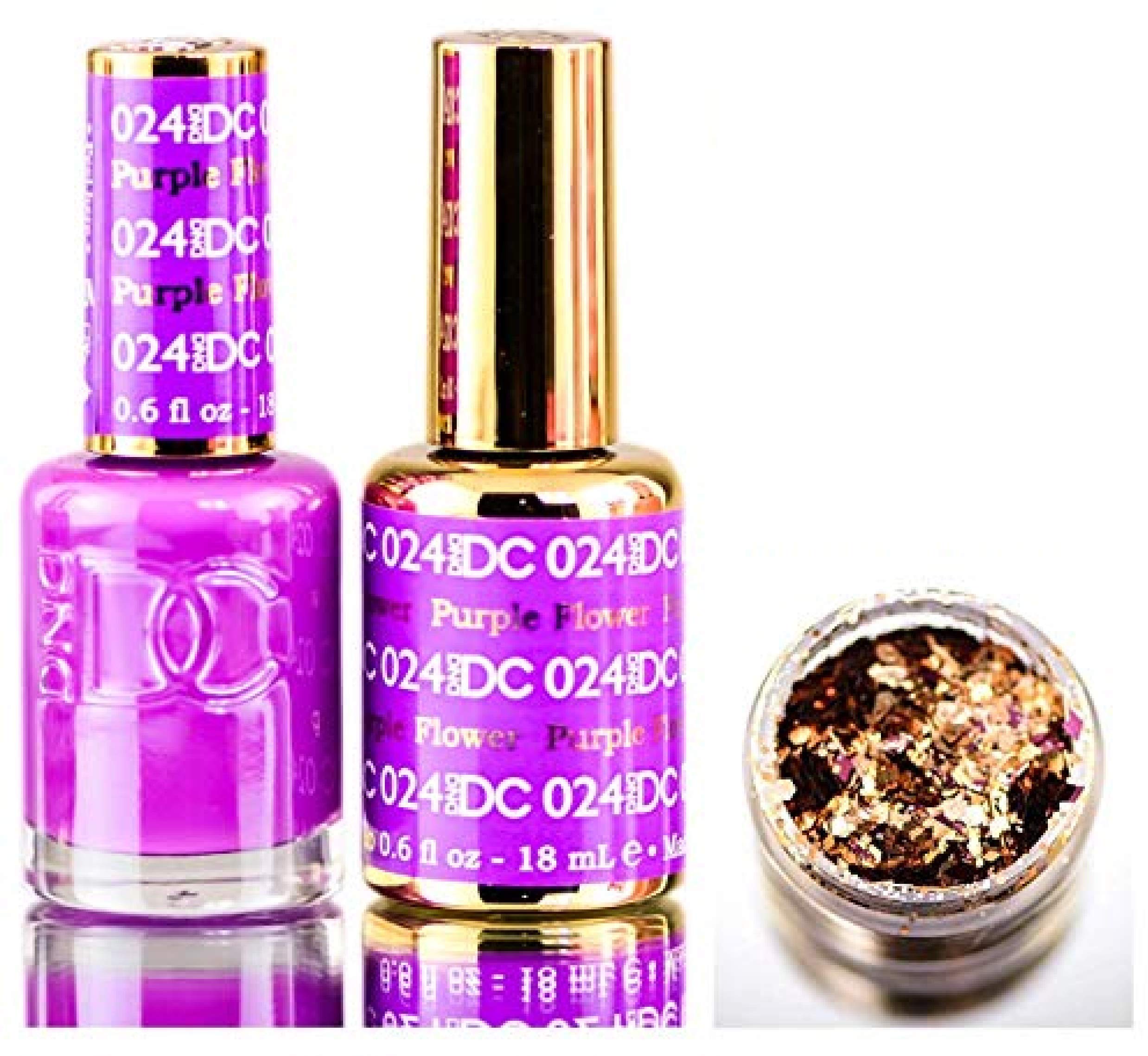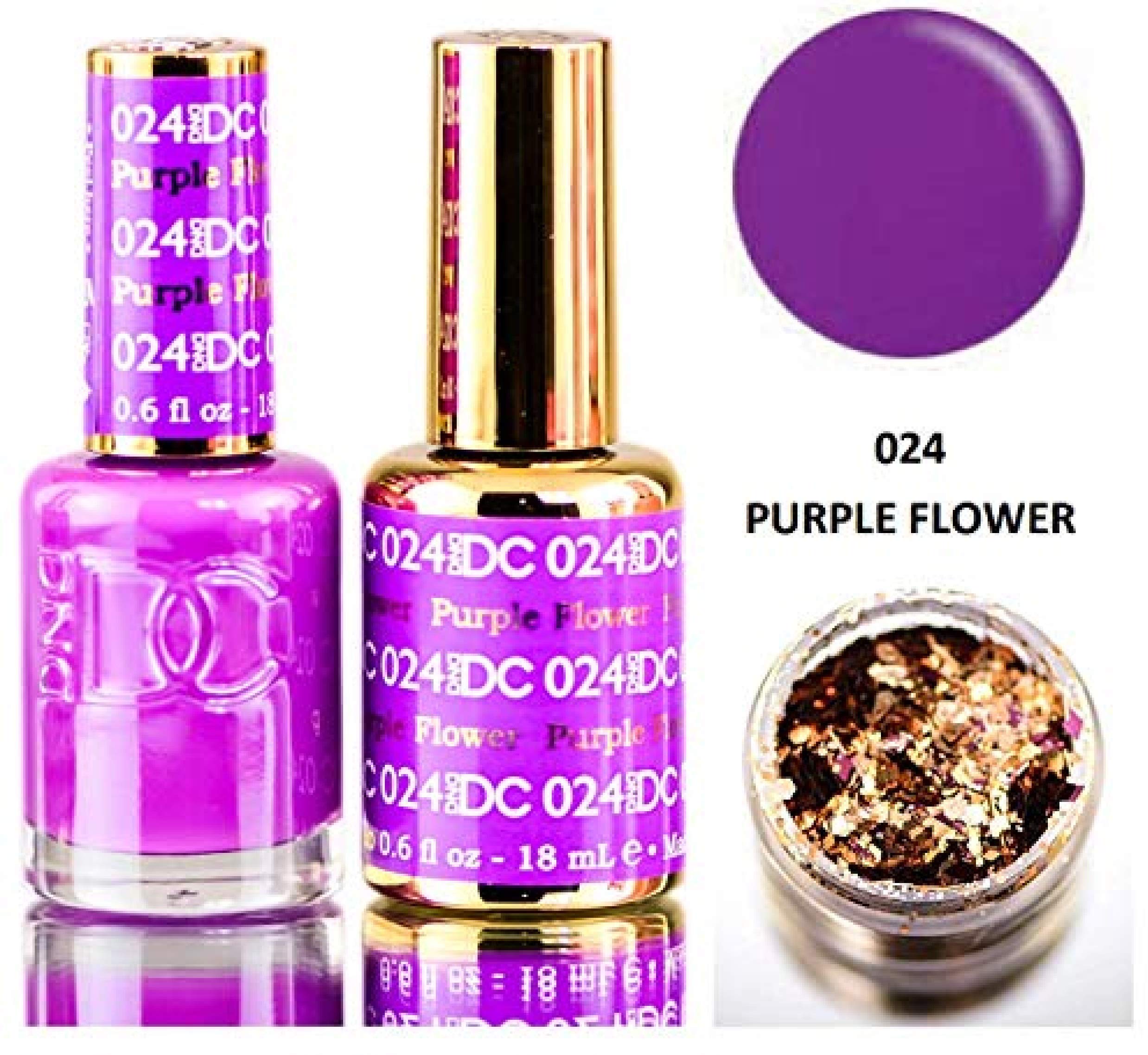 DND DC Purples GEL POLISH DUO, Gel Lacquer 0.5 oz + Matching Nail Polish Color 0.5 oz, Daisy Nails (with bonus side Glitter) Made in USA (Purple Flower (024))
