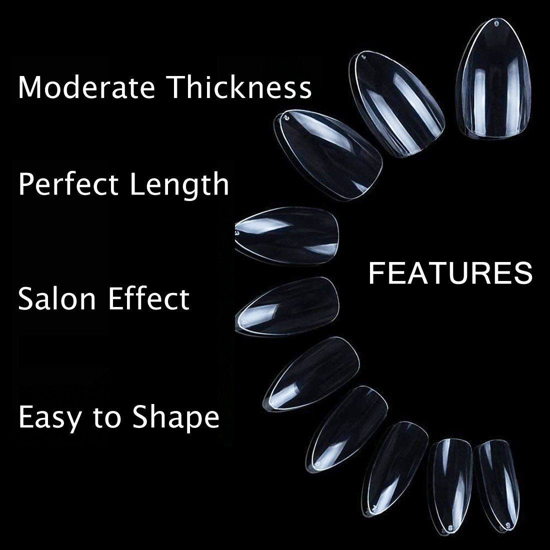 - ★FULL STILETTO SHAPE DESIGN: E EVEBYRA Pointy Nail Tips are designed with clear color and full cover sharp-ending.With perfect length and moderate thickness, you can wear them long or clip them into any shape you like.