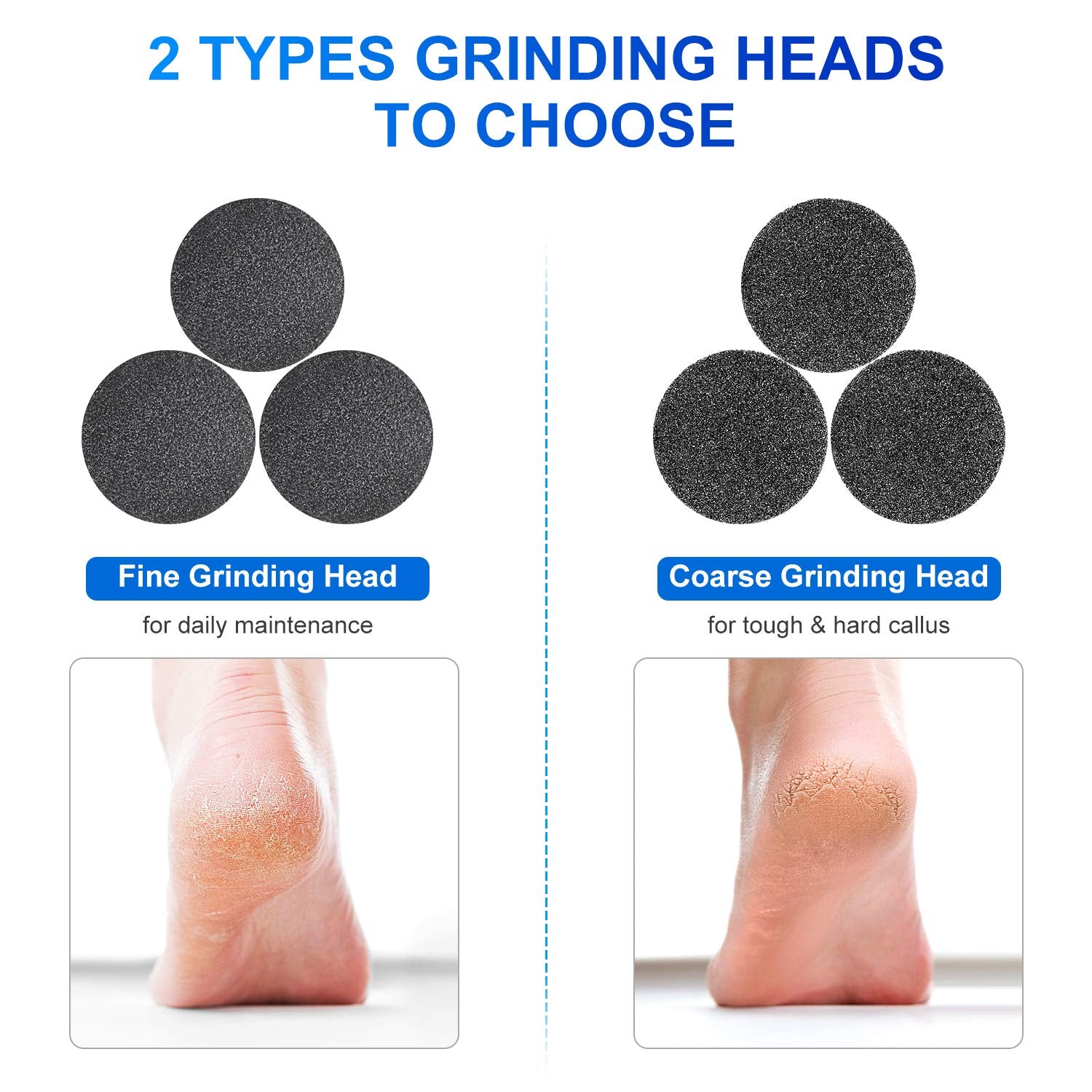 - 【2 Roughness Sets and 2 Speeds】The package have 6 grinding heads, 3 grinding heads are coarse and 3 fine grinding. Easily remove dead skin softly and quickly , high-density quartz sand material, durable. High speed for removing hard callus and and normal speed for soft dead skins