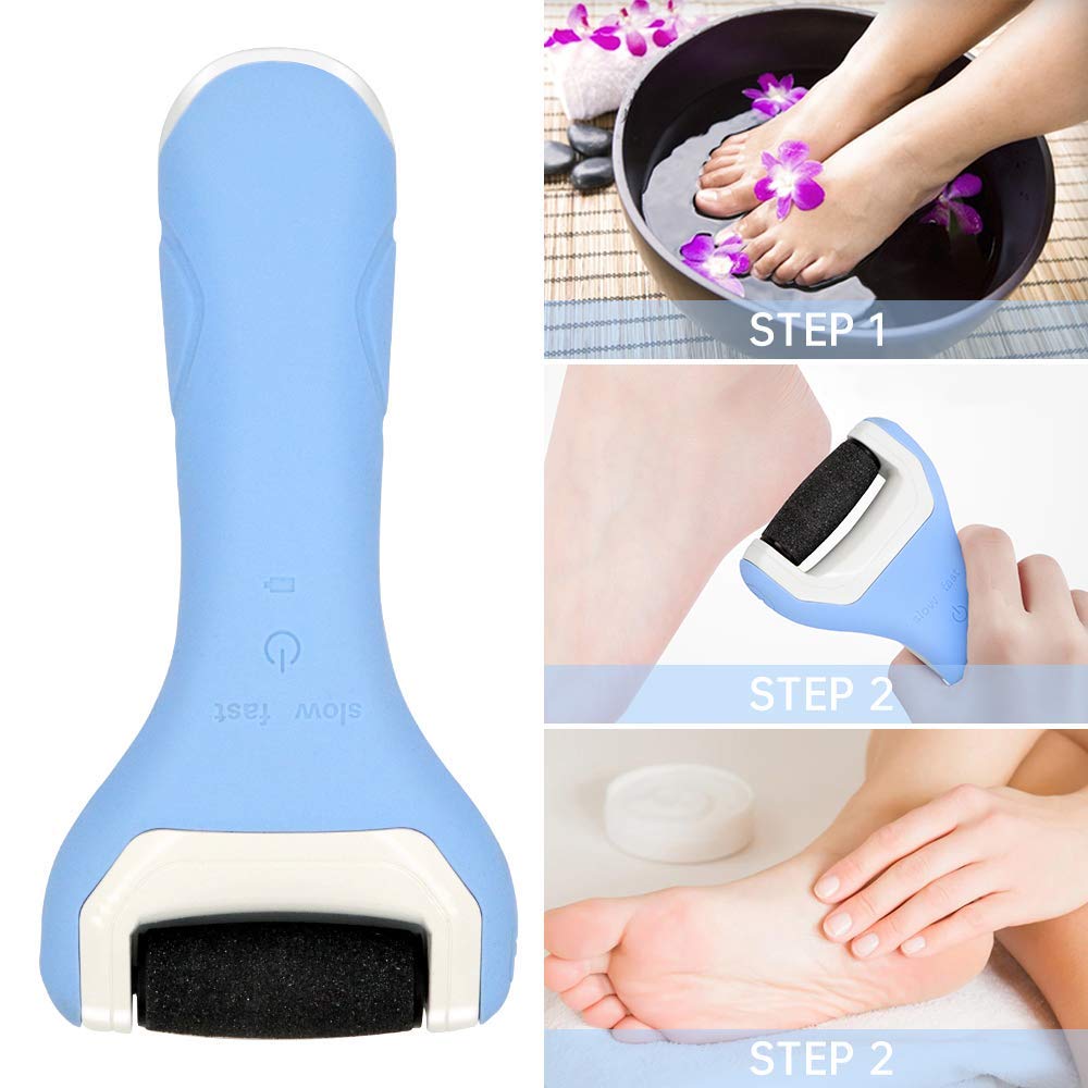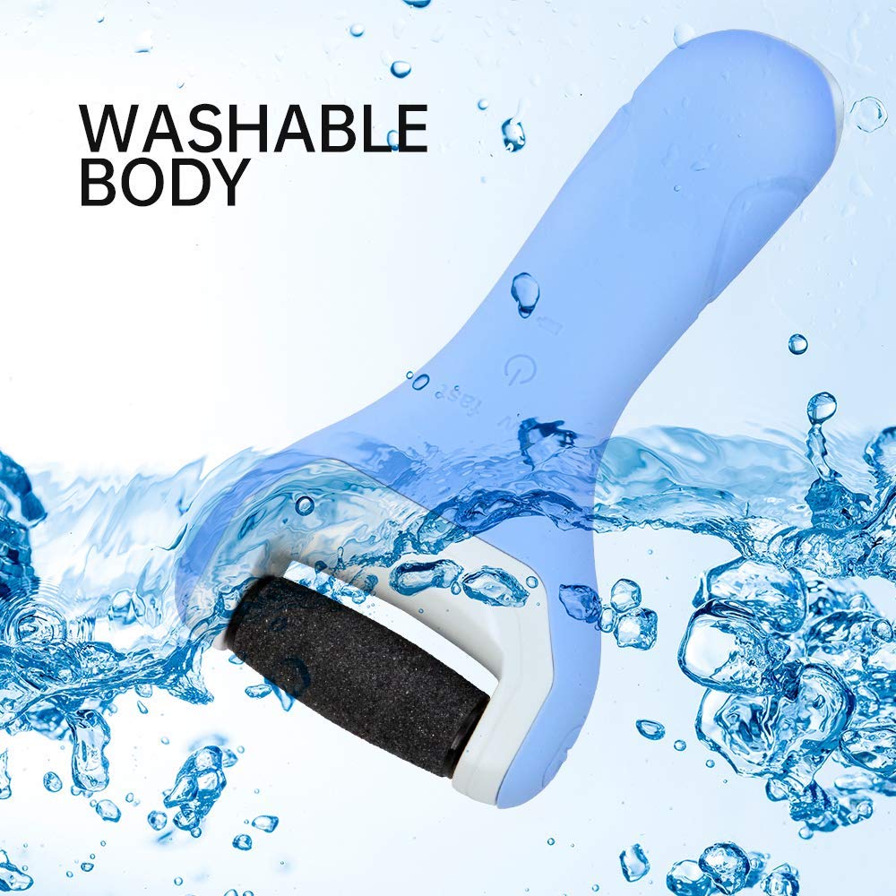 - [ SAFE AND EASY TO USE ] No more skin cuts, irritation, and painful callous removal with Advanced Pressure Sensitive Technology; The pedicure machine is designed to protect soles of feet while gently exfoliating cracked heels and calloused skin; Enjoy Happy Feet with this quick and simple foot buff treatment at home; Splash proof for quick rinsing.
