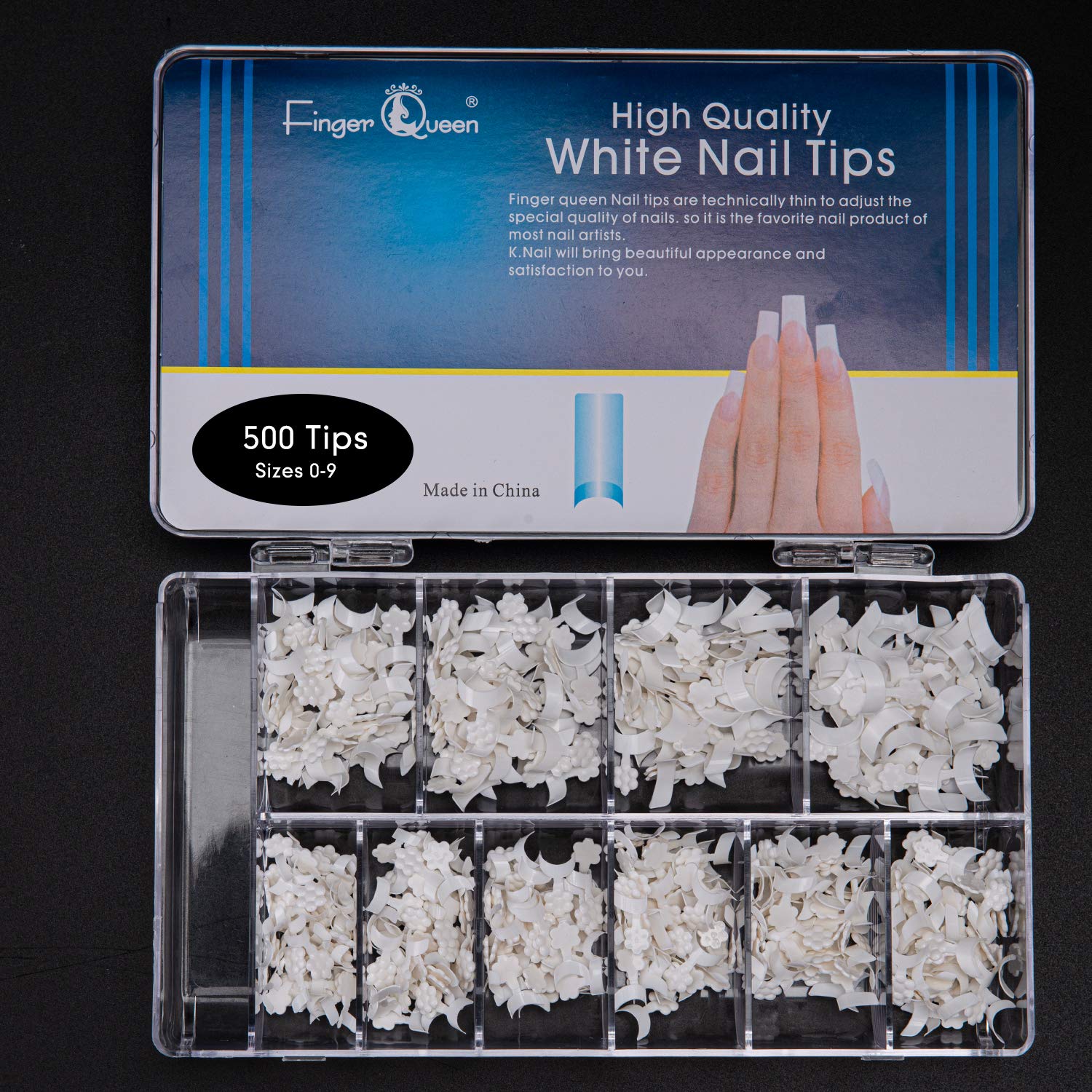 FINGERQUEEN 500 Pcs 10 Sizes French Short Style Acrylic False Nail Art Tips Finger Sticker Extension ToolFlower Handle with Number