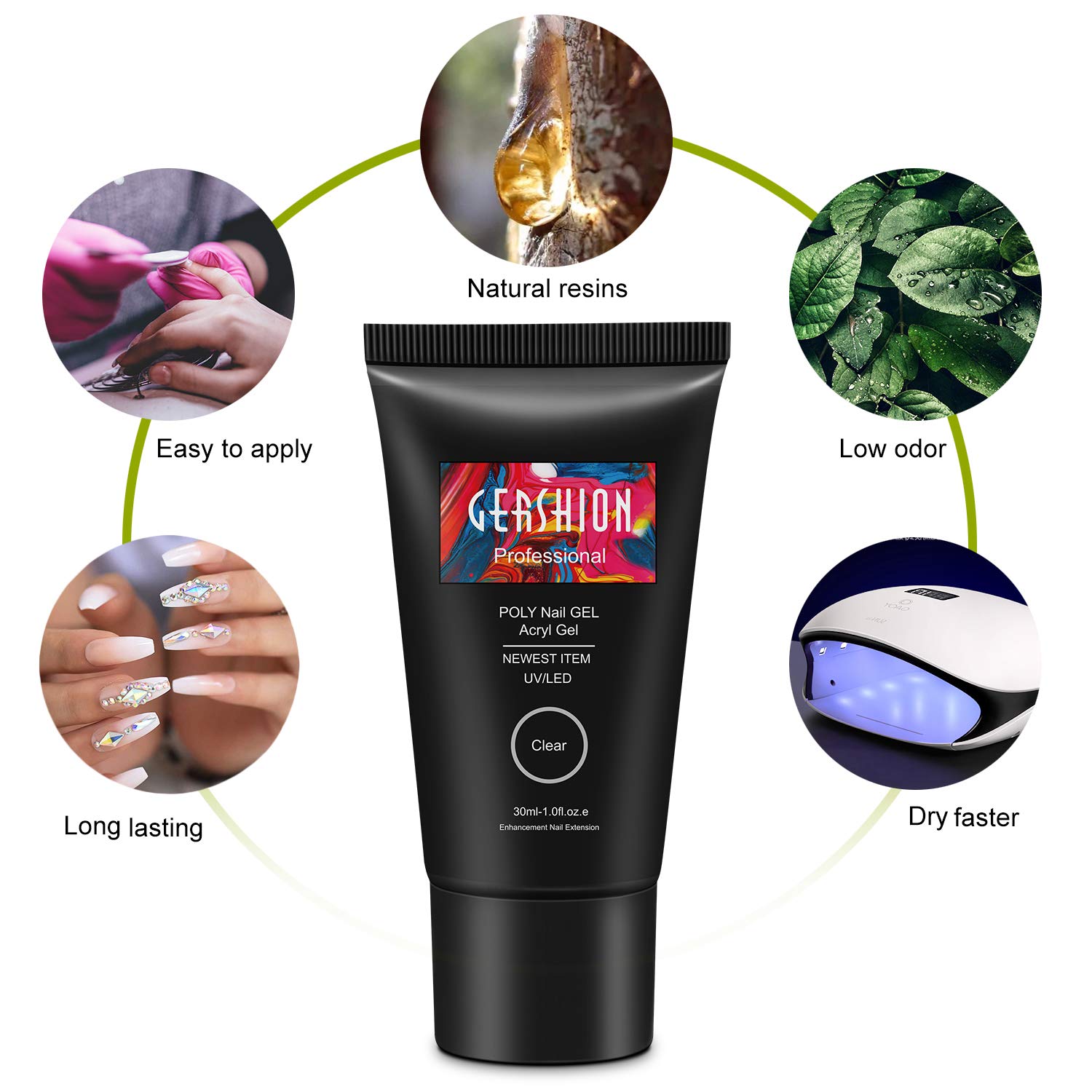 Gershion Clear Poly Nail Gel 60ML 2.02oz High Capacity Nail Extension Gel Builder Gel Trendy Nail Salon Nail Art Design DIY at Home Beginner Friendly