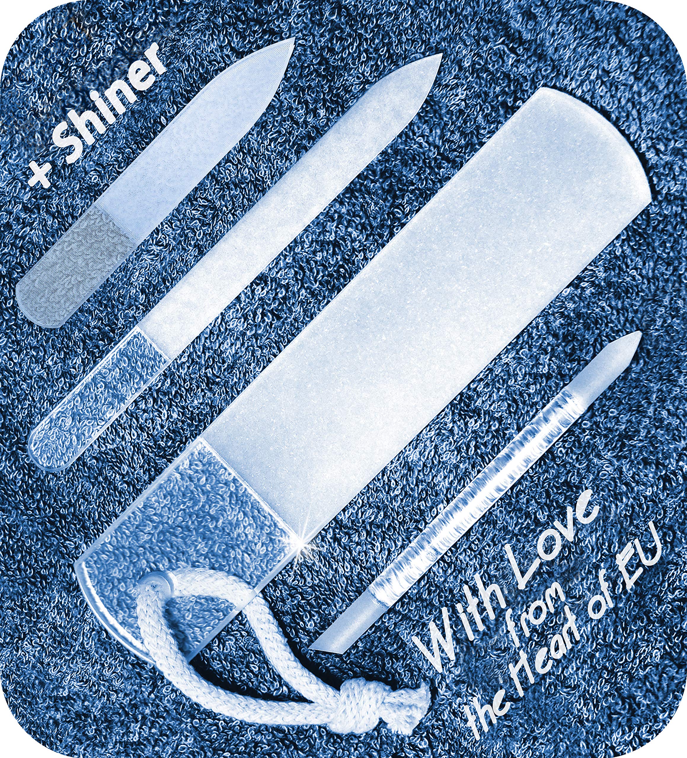 - PREMIUM QUALITY - Crystal glass nail files kit with buffer is double sided and made of premium quality Czech crystal glass. The grit board is permanently chemically etched (acid engraving) on both sides of the glass, so it will not degrade over time and will a lifetime.