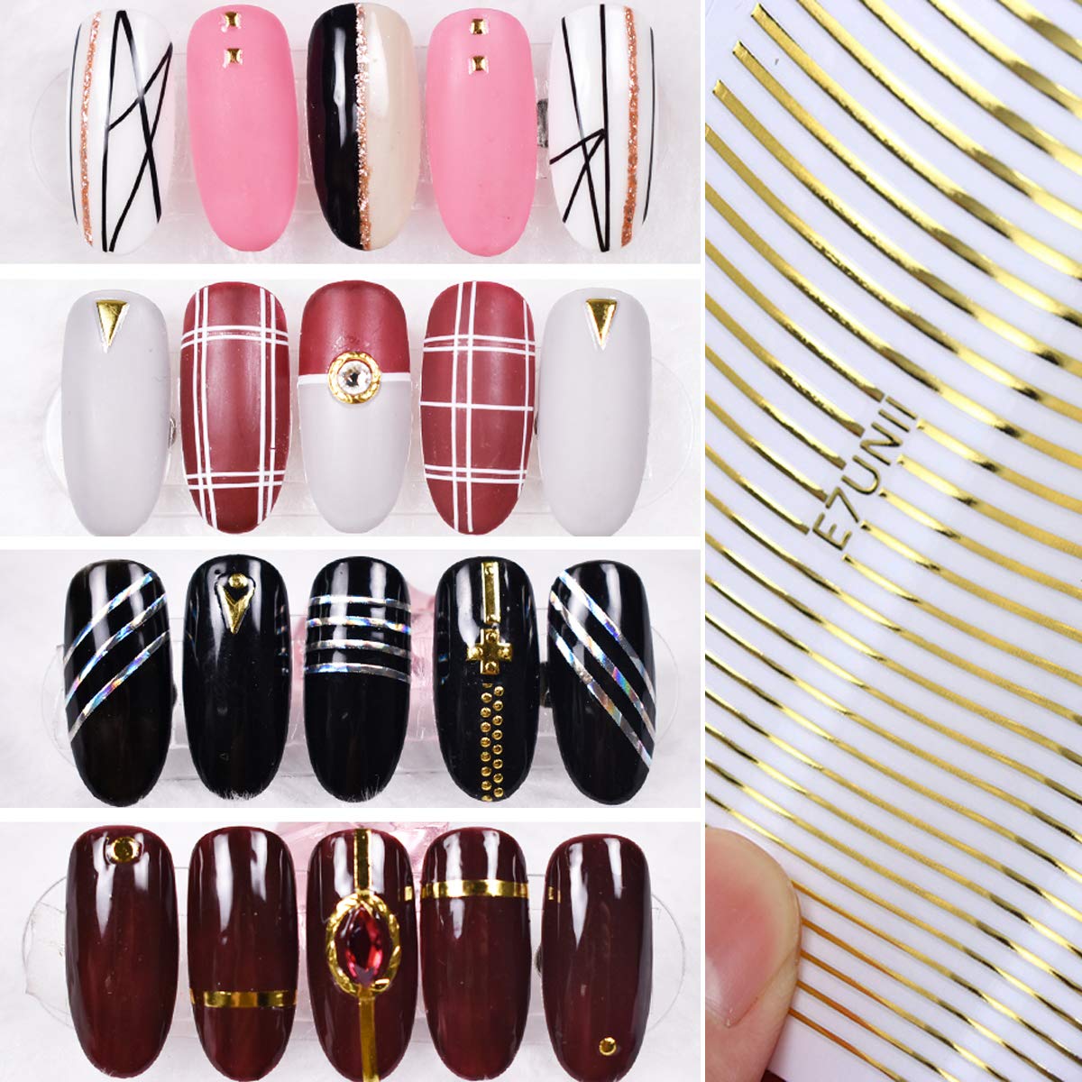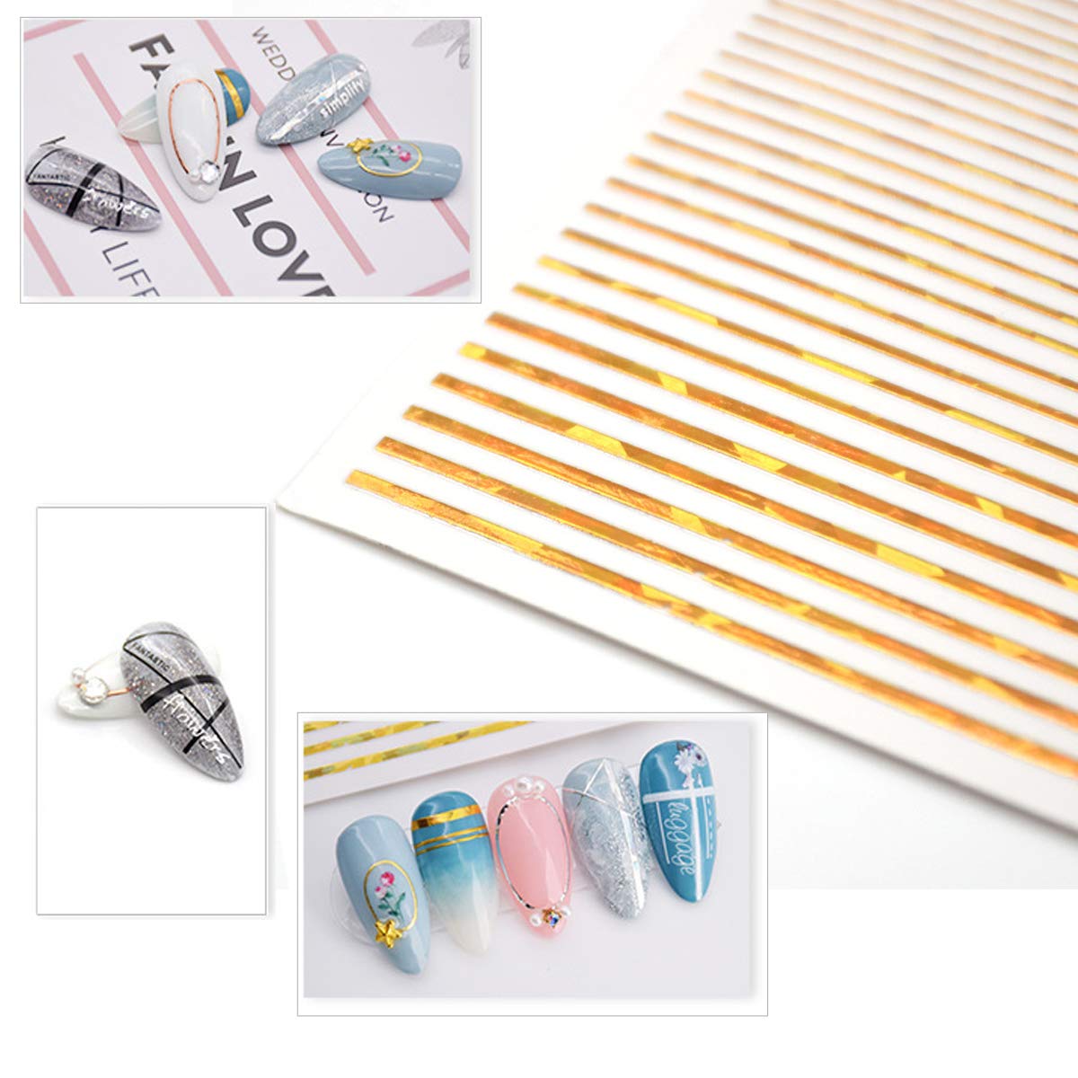 JAKSSO 12 Sheets 3D Metallic Nail Stickers for Women Gold Silver Nail Decals Chains Stripe Lines Adhesive Nail Art Stickers for Acrylic Nails Manicure DIY and Nail Salon