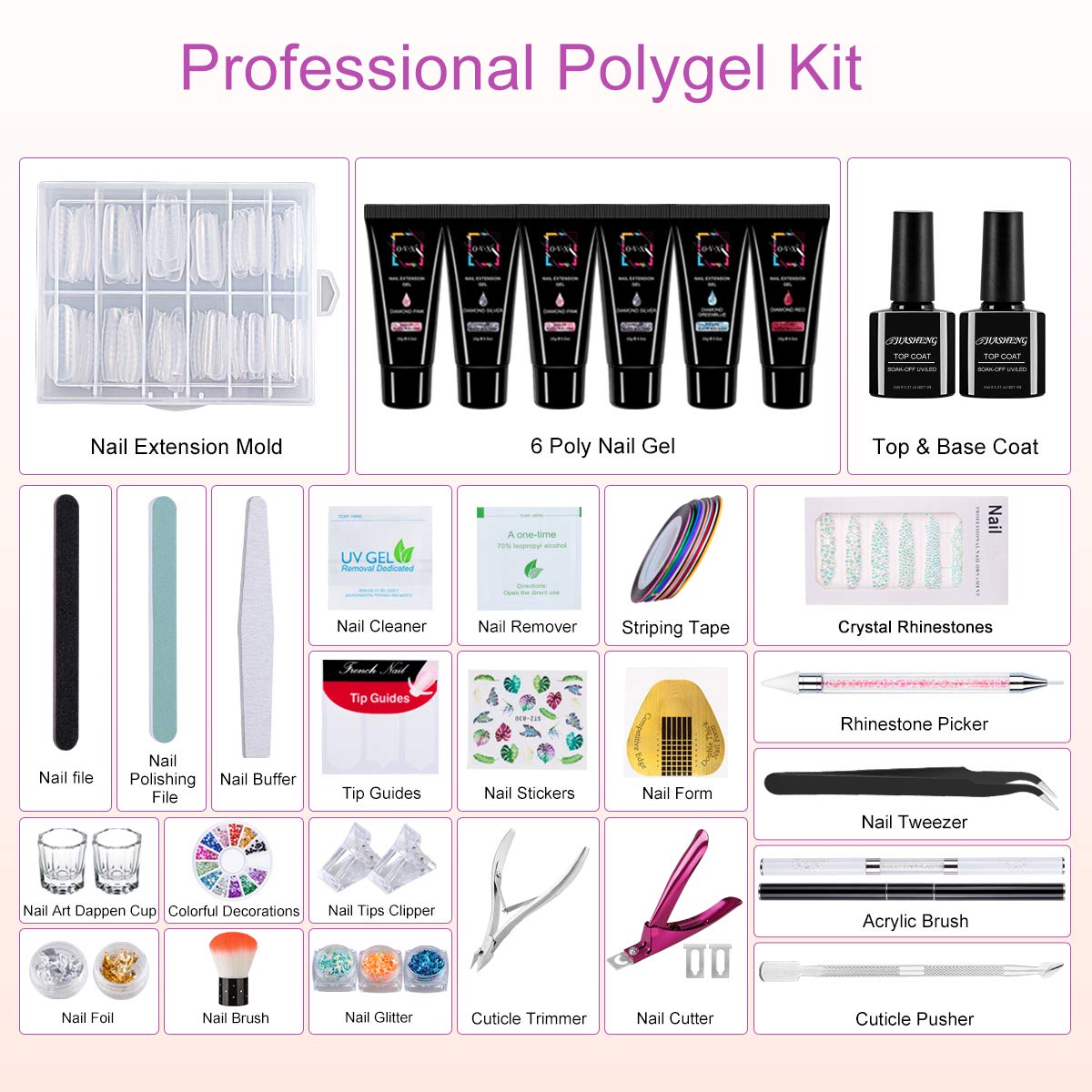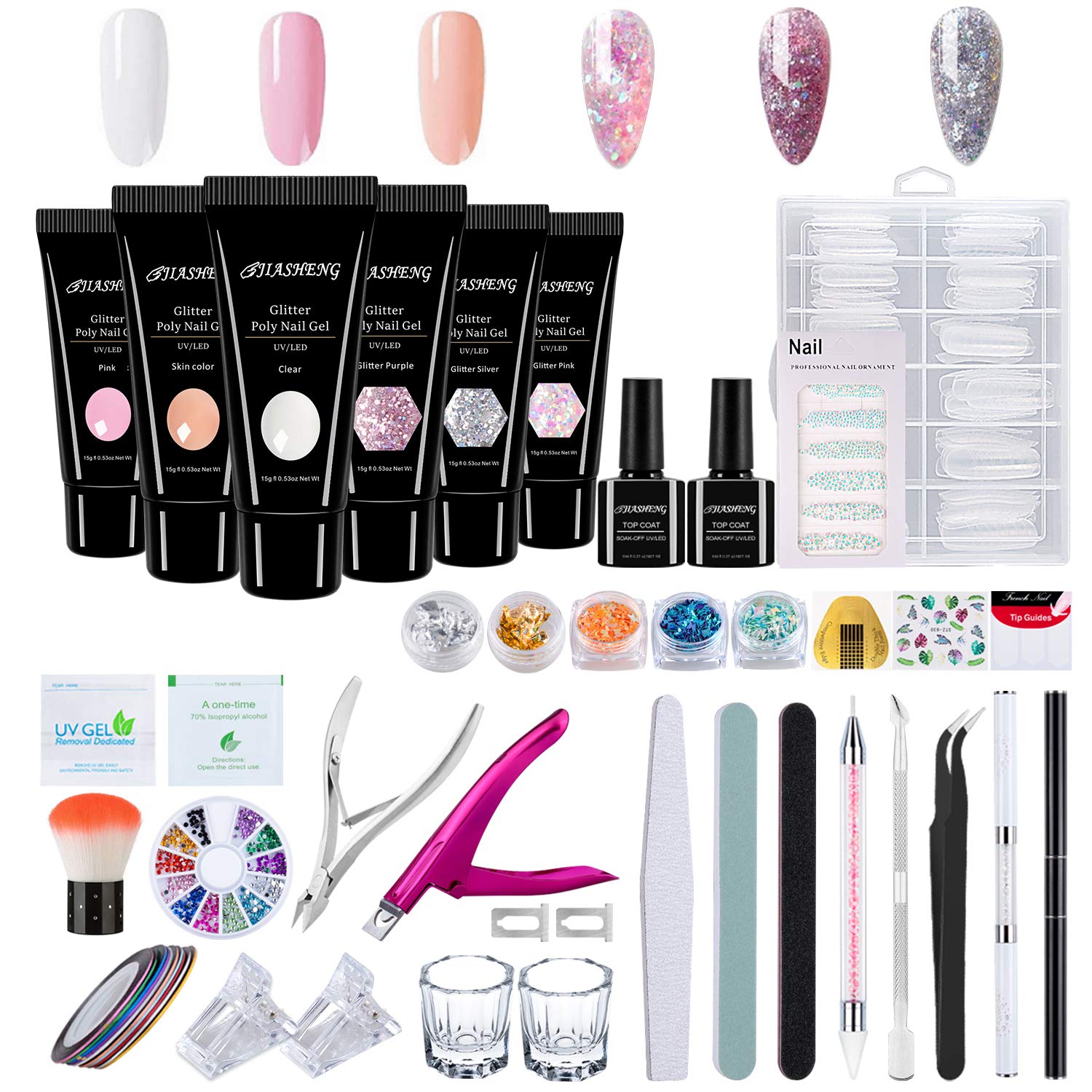 Jiasheng Polygel Nail Kit, Poly Extension Gel Nail Kit, All in One Nail Builder Nail Art Starter Trail Kit, Gel Nail Kits Set with Nail Rhinestones Glitter Decoration for DIY Nail Design at Home