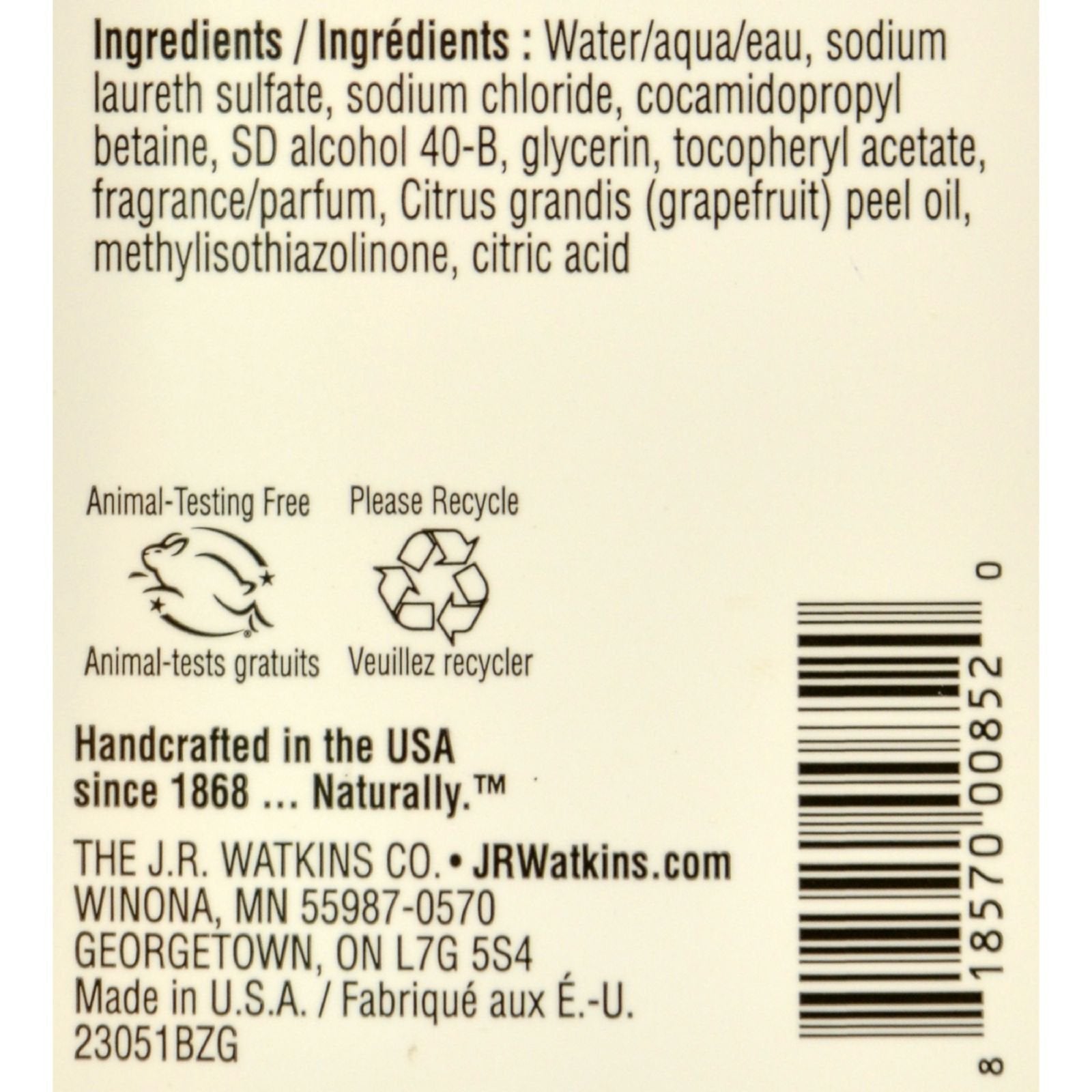 Bath and Body Liquid Hand Soap J.R. Watkins Brand: Visit the J.R. Watkins Store J.R. Watkins 11 oz. Liquid Hand Soap Lem Scent: Lemon Antibacterial: No Product Type: Liquid Hand Soap Container Size: 11 Packaging Type: Bottle with Pump Moisturizing: No Refill: No Formulated with natural ingredients and essential oils...