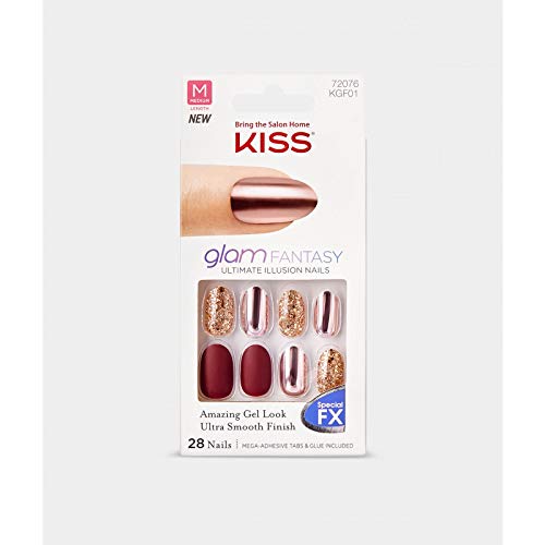 Brand: Visit the Kiss Store Glam Fantasy SpecialFX ultimate illusion nails take minutes to apply & never dull or chip! Two ways to wear: glue on or press-on adhesive tabs Nails stay perfect for up to a week! Kit includes 28 medium length nails, 28 mega- Adhesive tabs, pink gel...