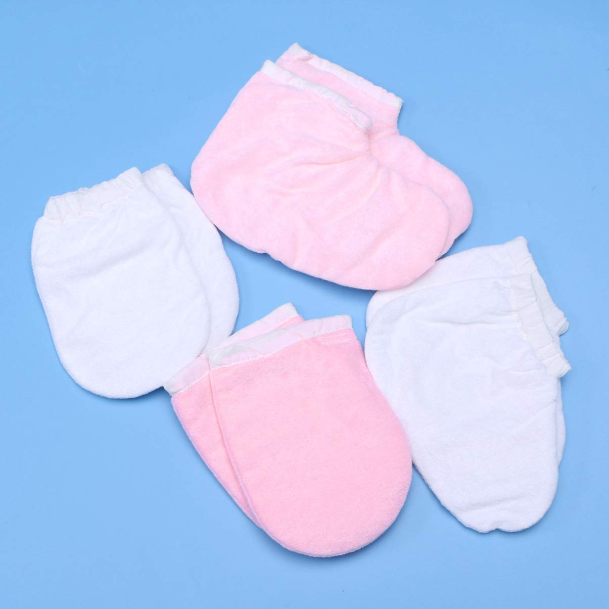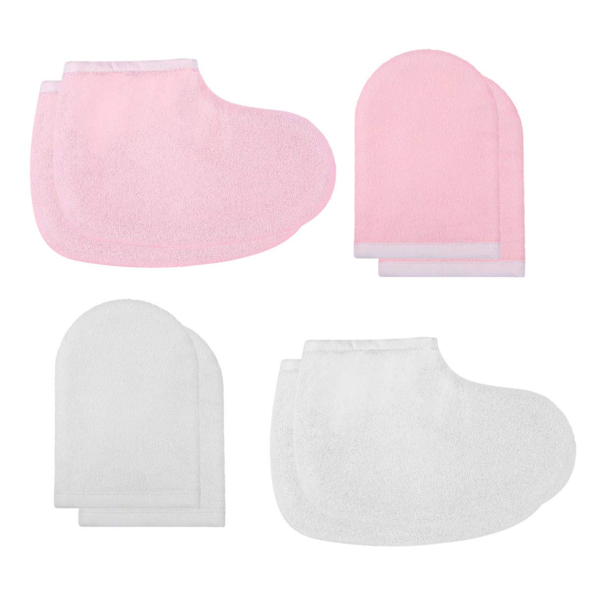 LEORX Paraffin Wax Gloves and Booties Set 4 Pairs Terry Cloth Mitts Booties Moisturizing Spa Accessories for Hand Foot Care (Pink and White)
