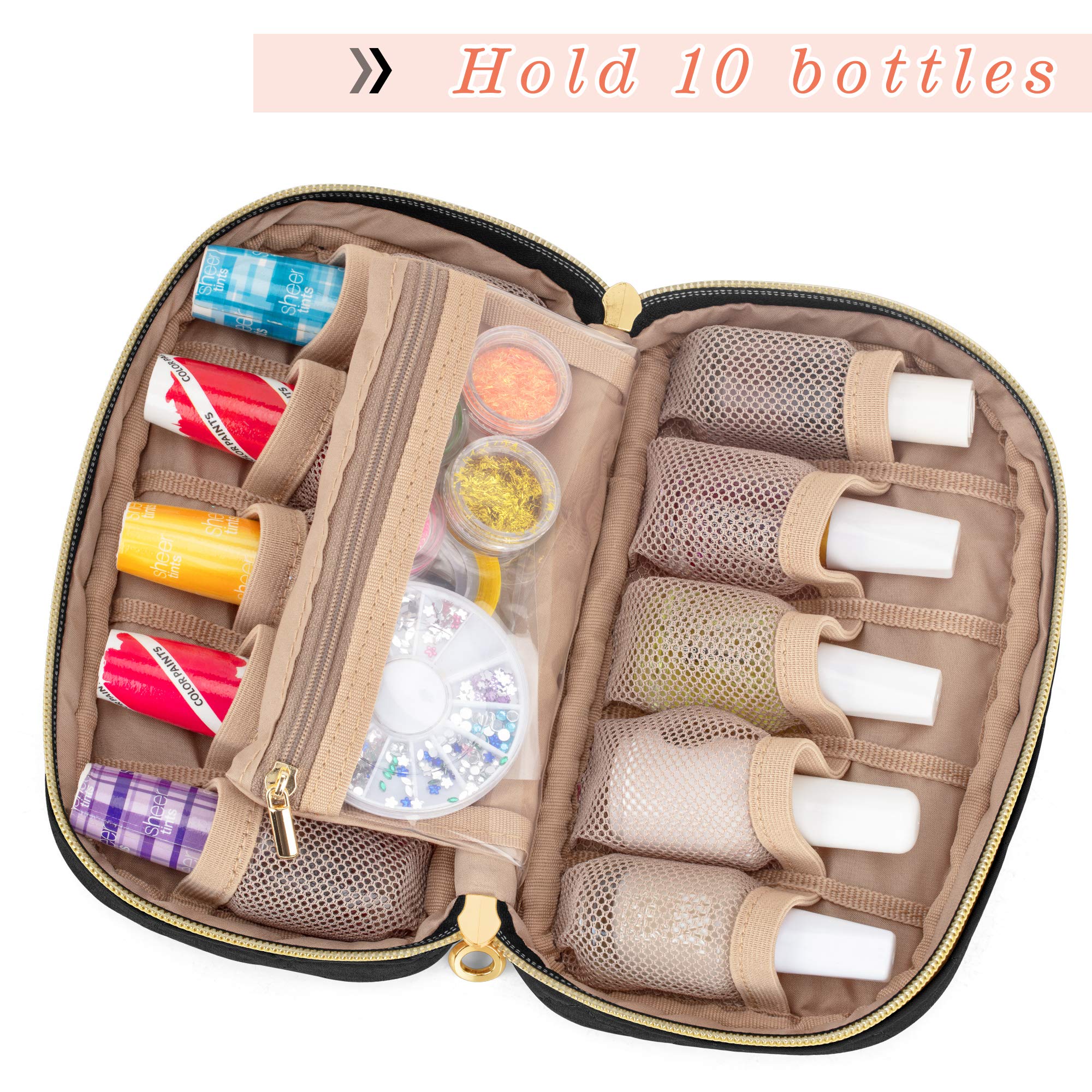 Luxja Nail Polish Case - Holds 10 Bottles (15ml - 0.5 fl.oz), Nail Polish Organizer with Zipper Pockets (Bag Only), Black