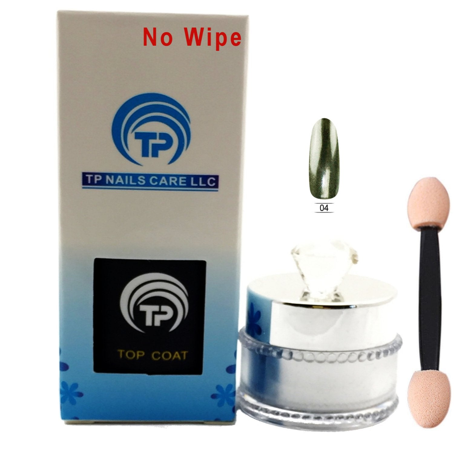 Magic Mirror Chrome Effect Metallic Powder Plus No Wipe Top Coat. App. 5g per jar / 15 ml per No Wipe Bottle (Mirror #04 / No Wipe)