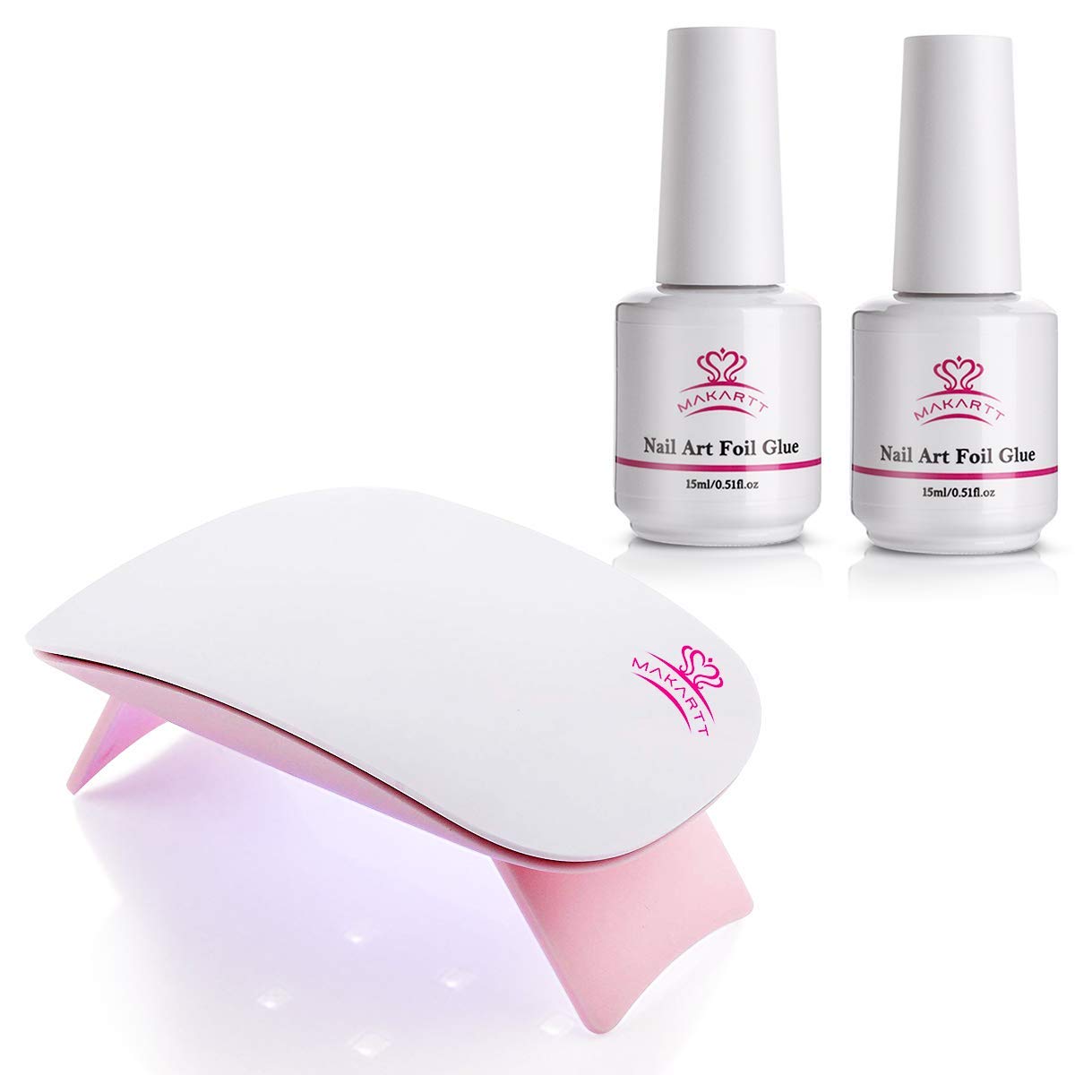 Makartt Nail Art Foil Glue Gel and Nail Lamp Bundle, 15ML 2 Bottles Foil Stickers Nail Transfer Tips , 6W Mini UV LED Lamp