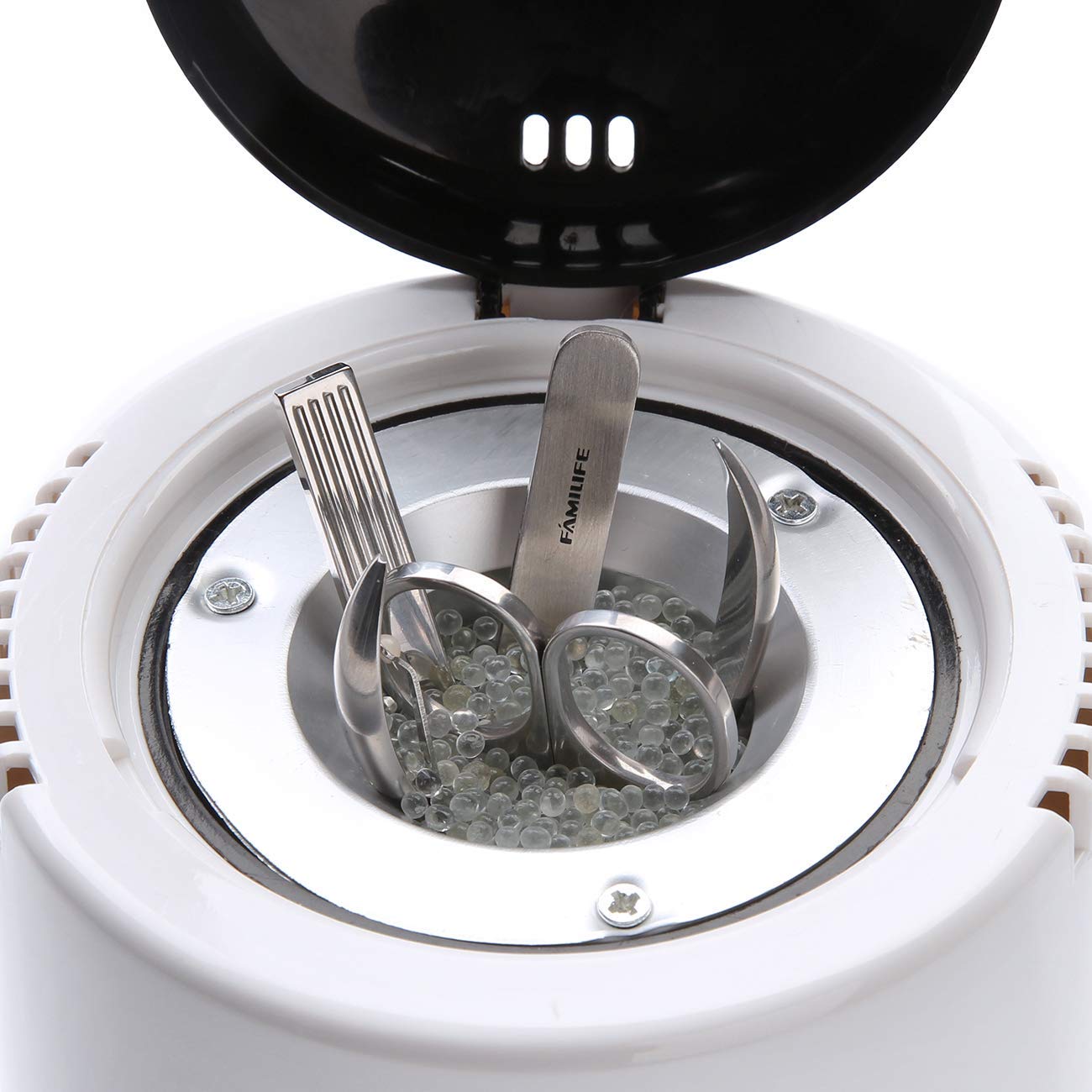- ★★★★★ Glass Beads Sterilization: This sterilizing pot is with Glass Beads in the inner pot to hold the metal tools being sterilized and to diffuse heat and keep hot, any liquid is not allowed to put into the machine.