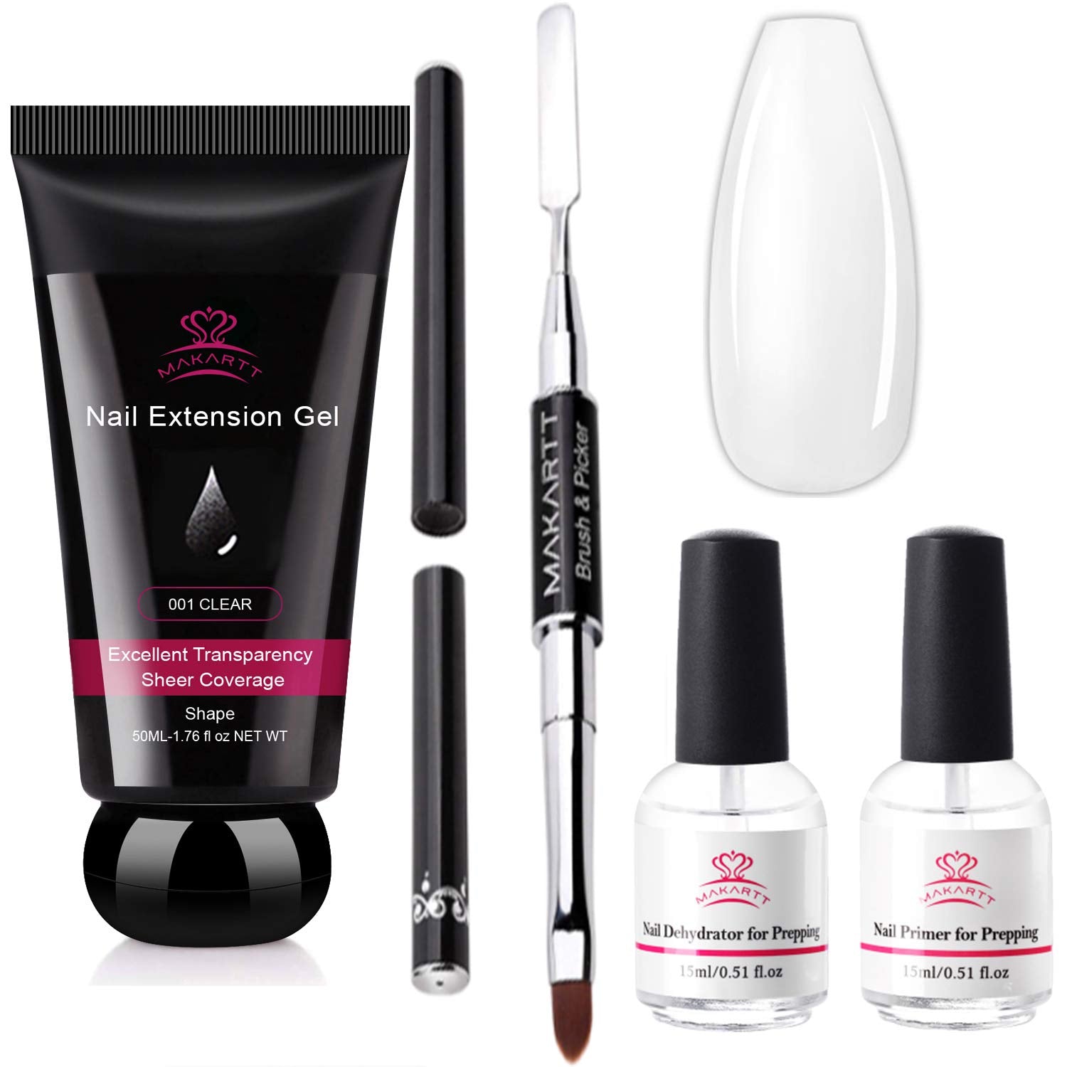 Makartt Poly Nail Gel Clear 50ML Bundle with Nail Dehydrator and Nail Primer Kit, Gel Nail Brush and nail Spatula Dual End by Makartt Store