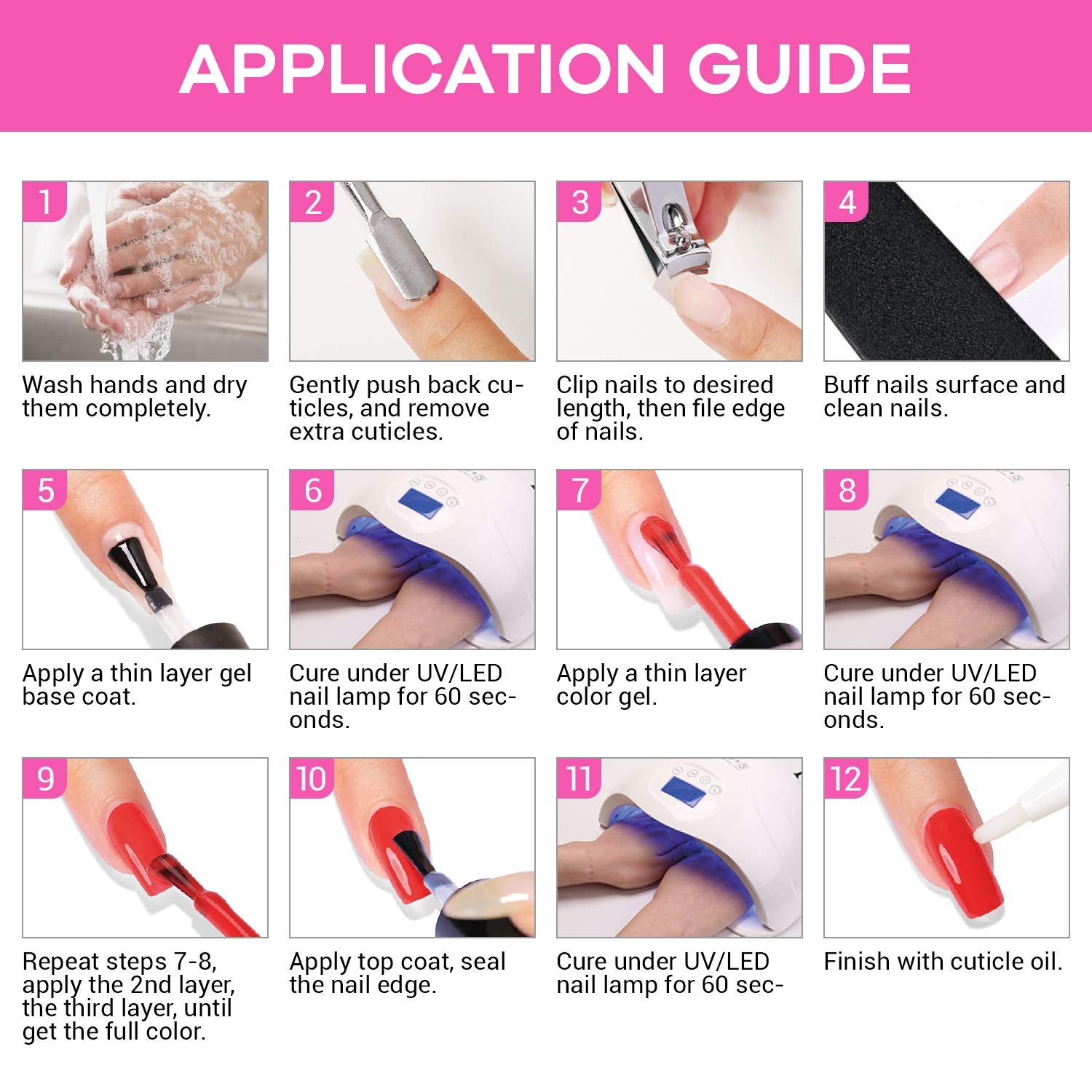 • ❤ Healthy: Environment-friendly products with healthy ingredients, low smell, NON-TOXIC. Enjoy the fun of making nails and need to cure under nail dryer light.